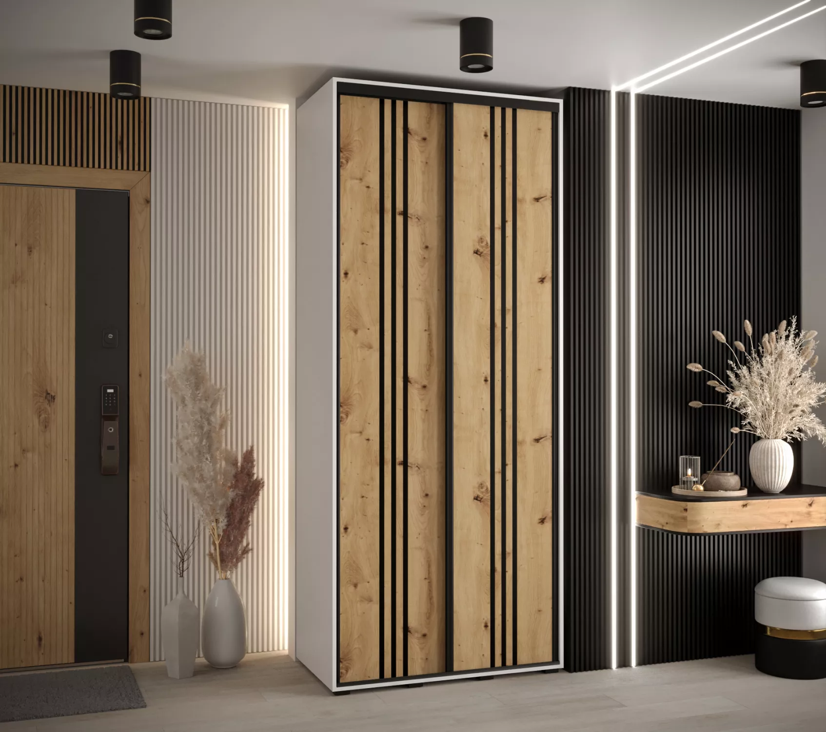 Šatní skříň ASIRI 6 - 120/45 cm, bílá / dub artisan / černá
