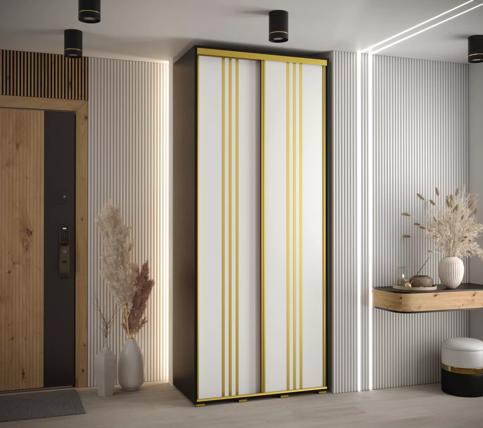 Šatní skříň ASIRI 6 - 120/45 cm, černá / bílá / zlatá
