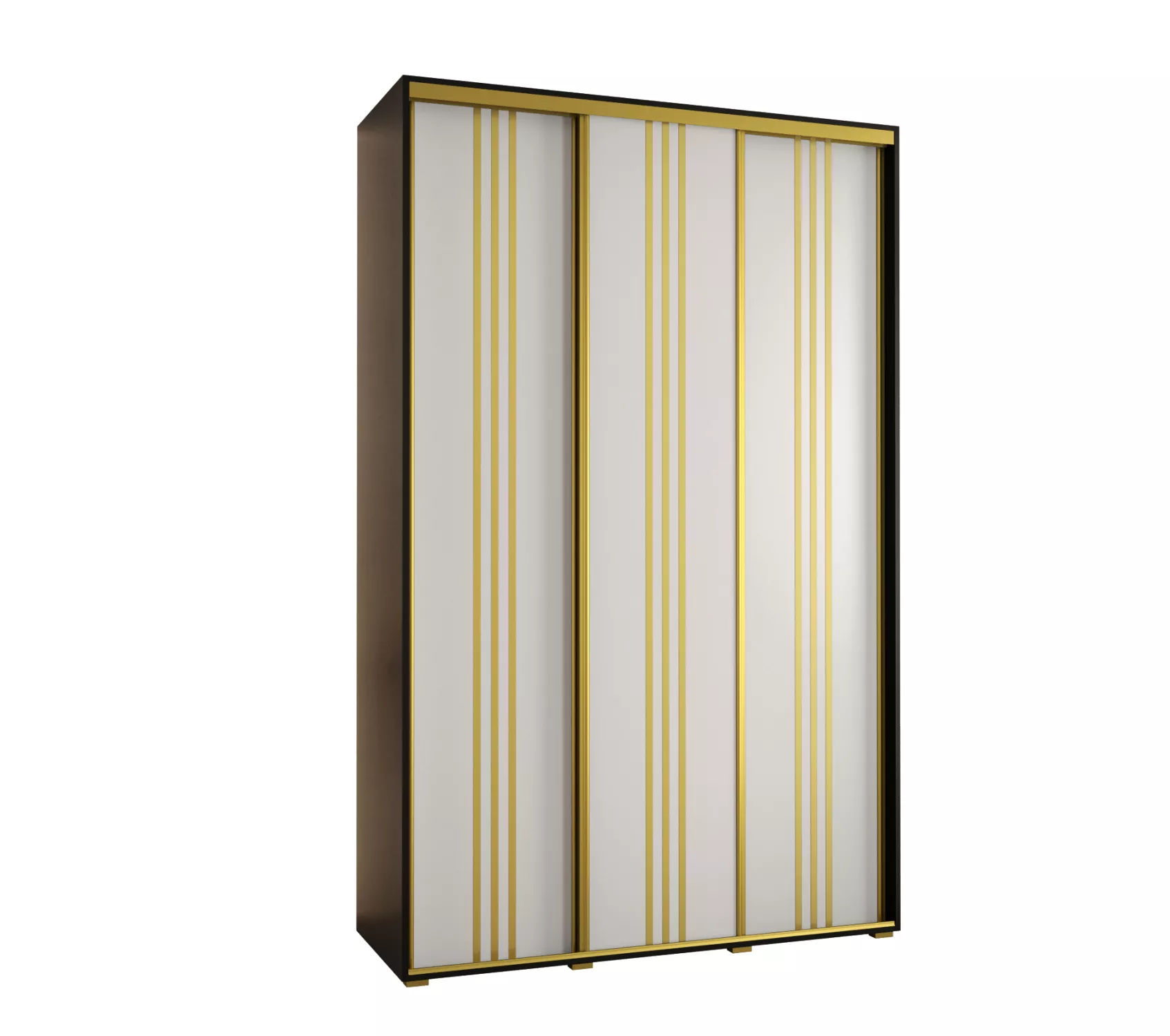 Šatní skříň ASIRI 6 - 150/45 cm, černá / bílá / zlatá