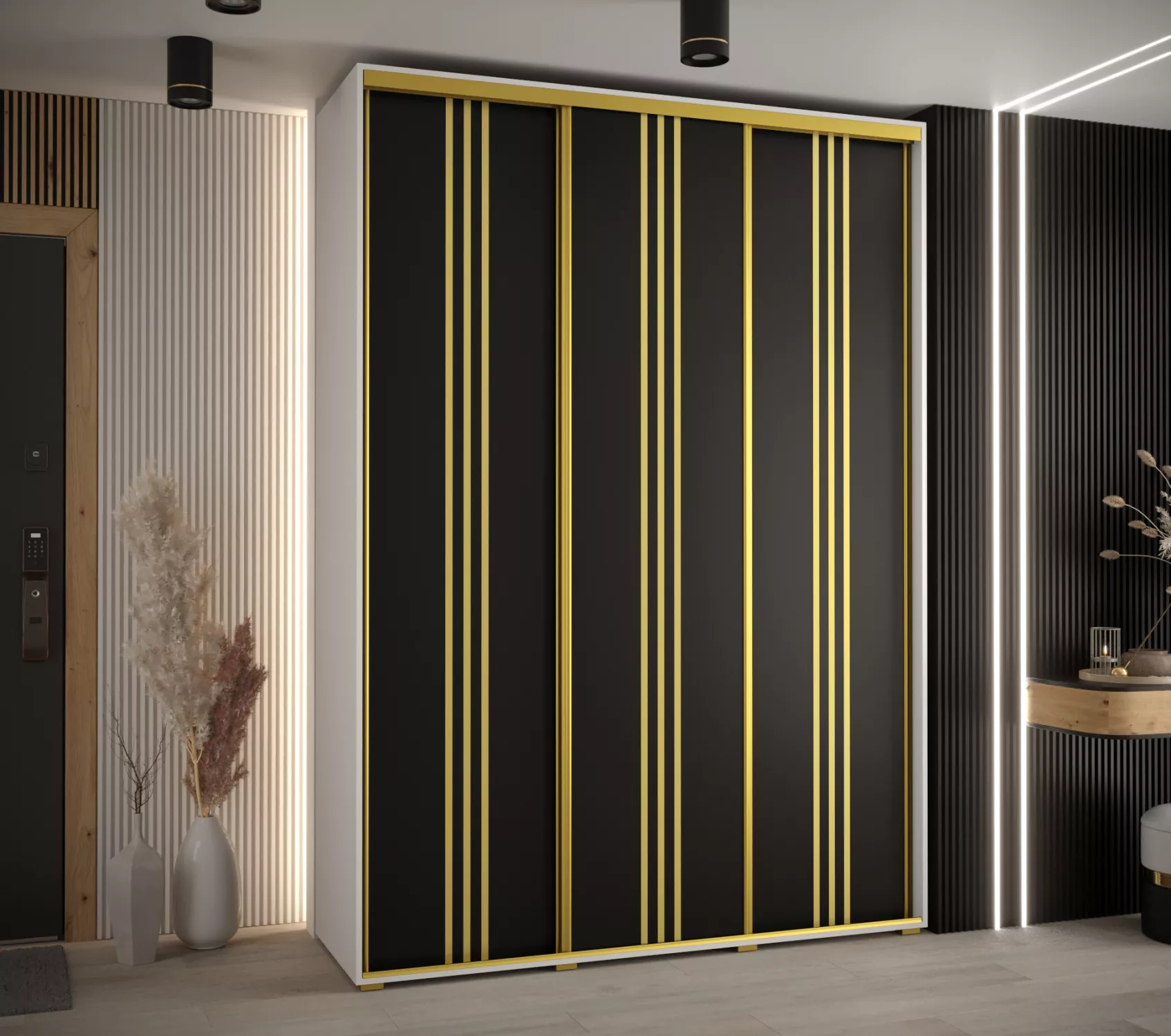 Šatní skříň ASIRI 6 - 170/45 cm, bílá / černá / zlatá