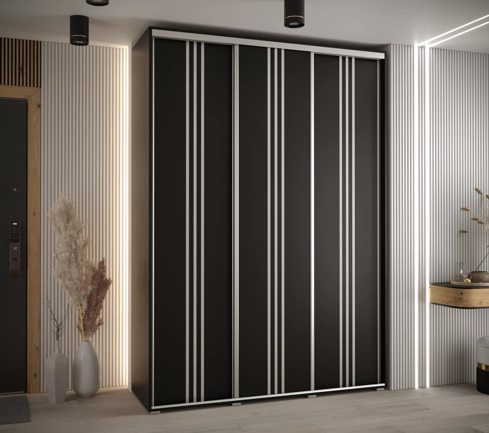 Šatní skříň ASIRI 6 - 170/45 cm, černá / stříbrná