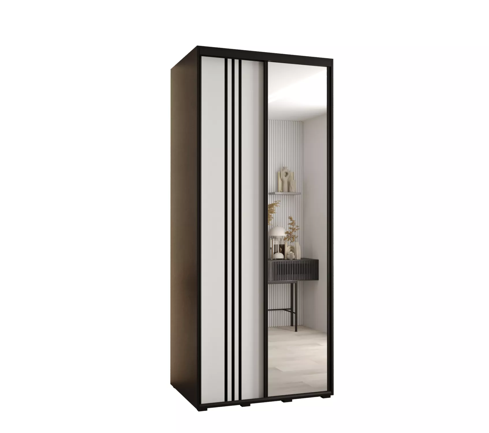Šatní skříň ASIRI 7 - 100/45 cm, černá / bílá / černá