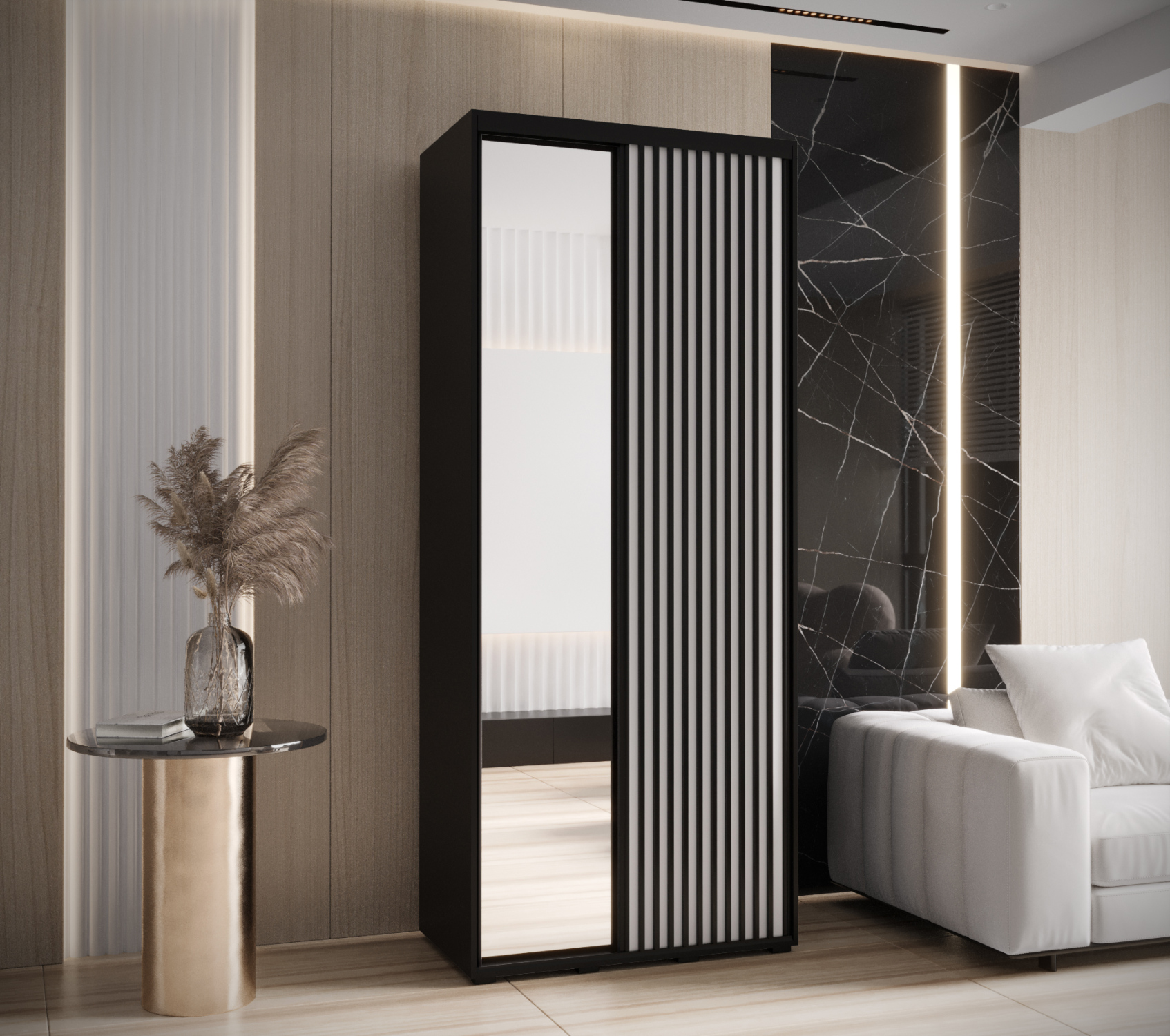 Šatní skříň ASIRI 7 - 110/45 cm, bílá / černá / černá