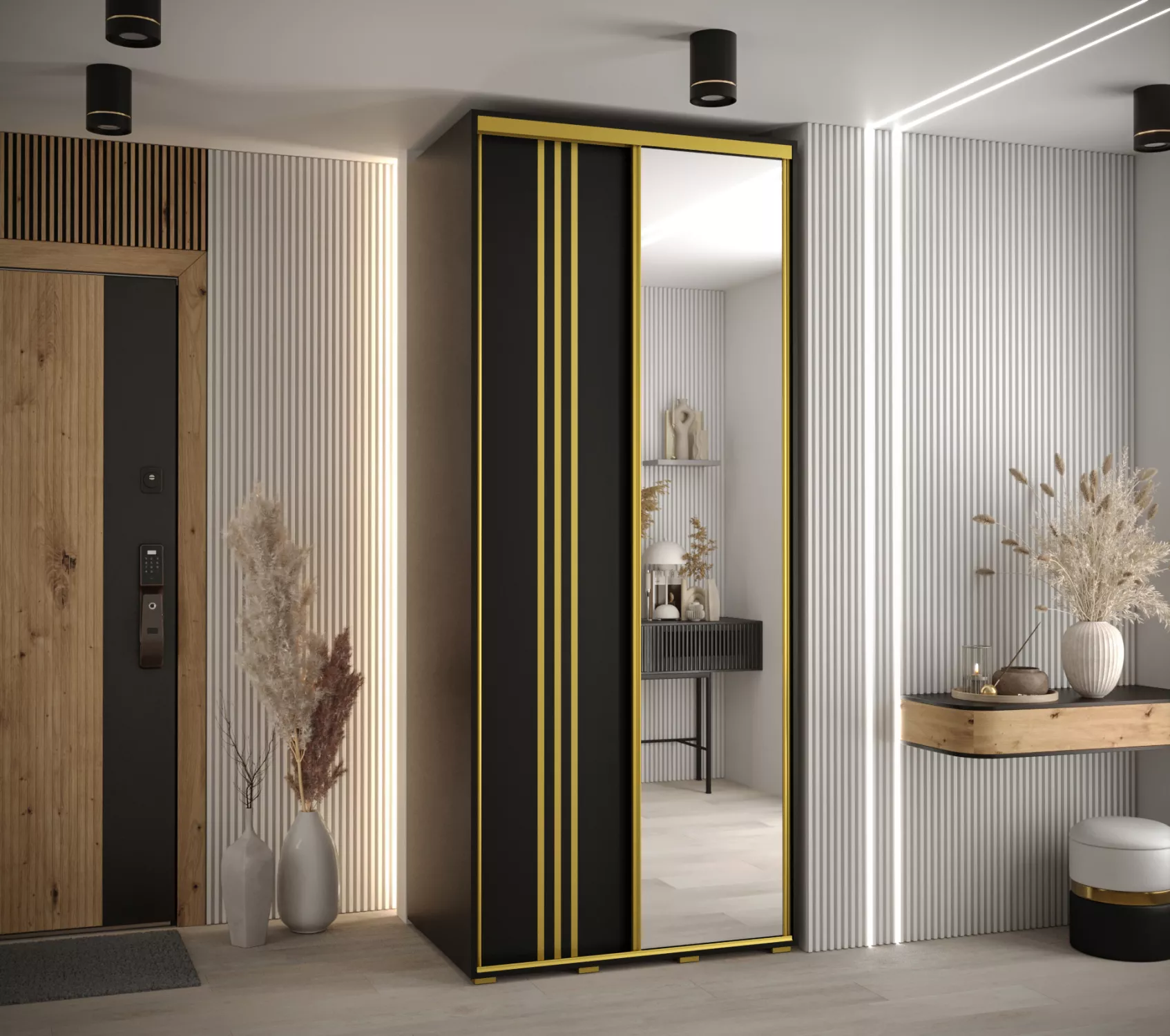 Šatní skříň ASIRI 7 - 110/45 cm, černá / zlatá