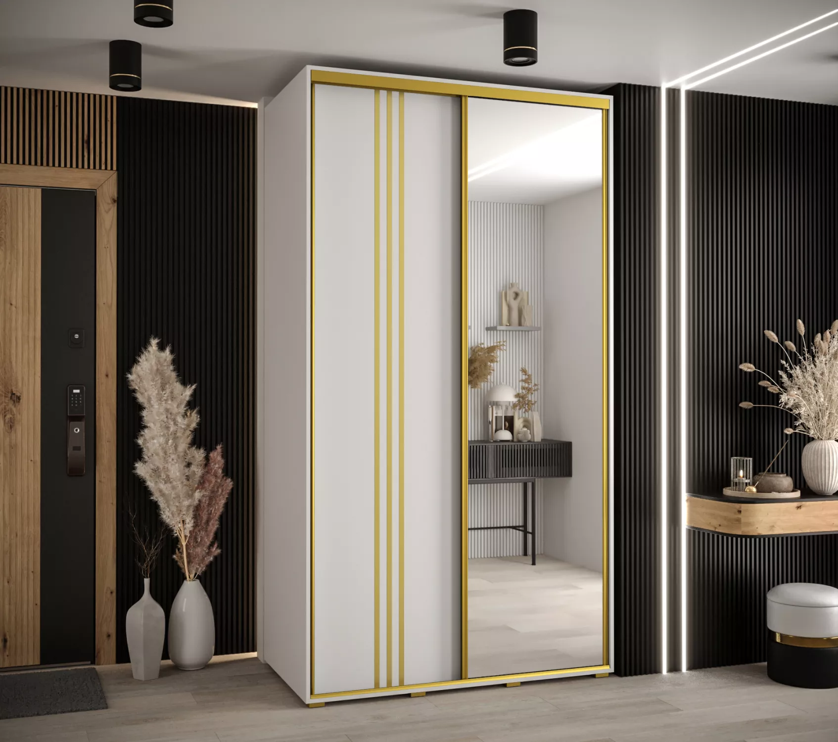 Šatní skříň ASIRI 7 - 130/45 cm, bílá / zlatá