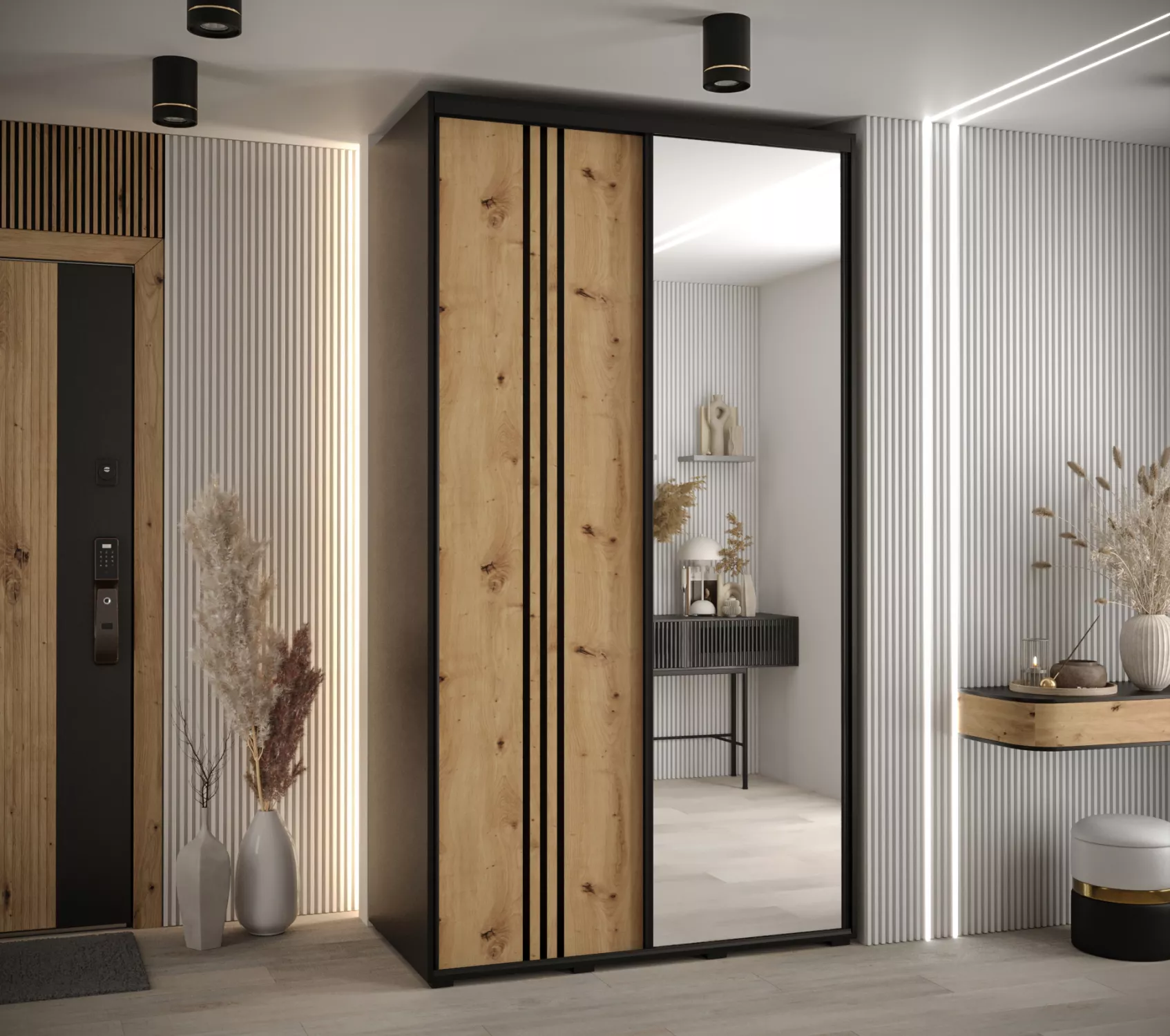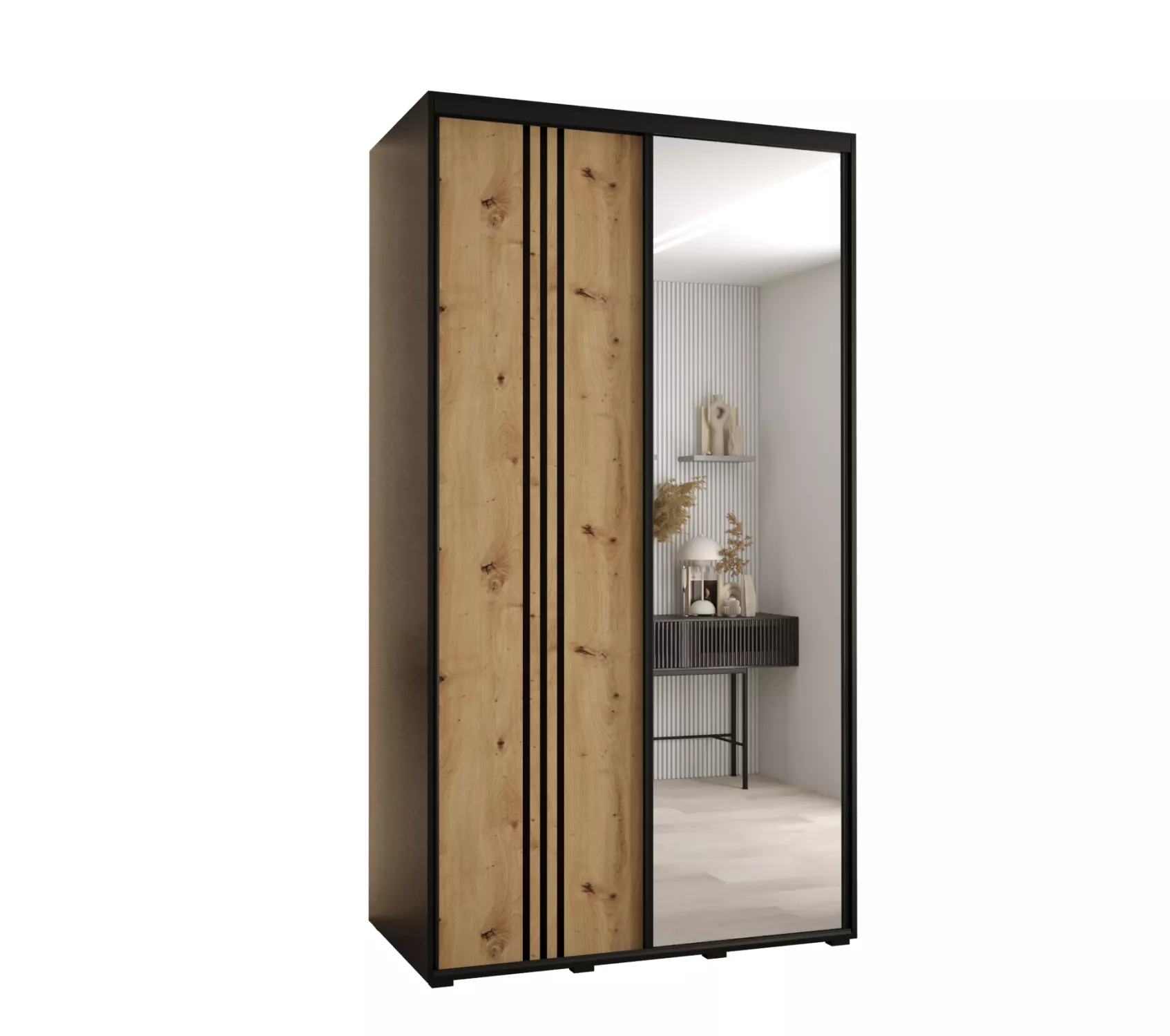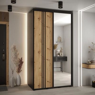 Šatní skříň ASIRI 7 - 130/45 cm, černá / dub artisan / černá