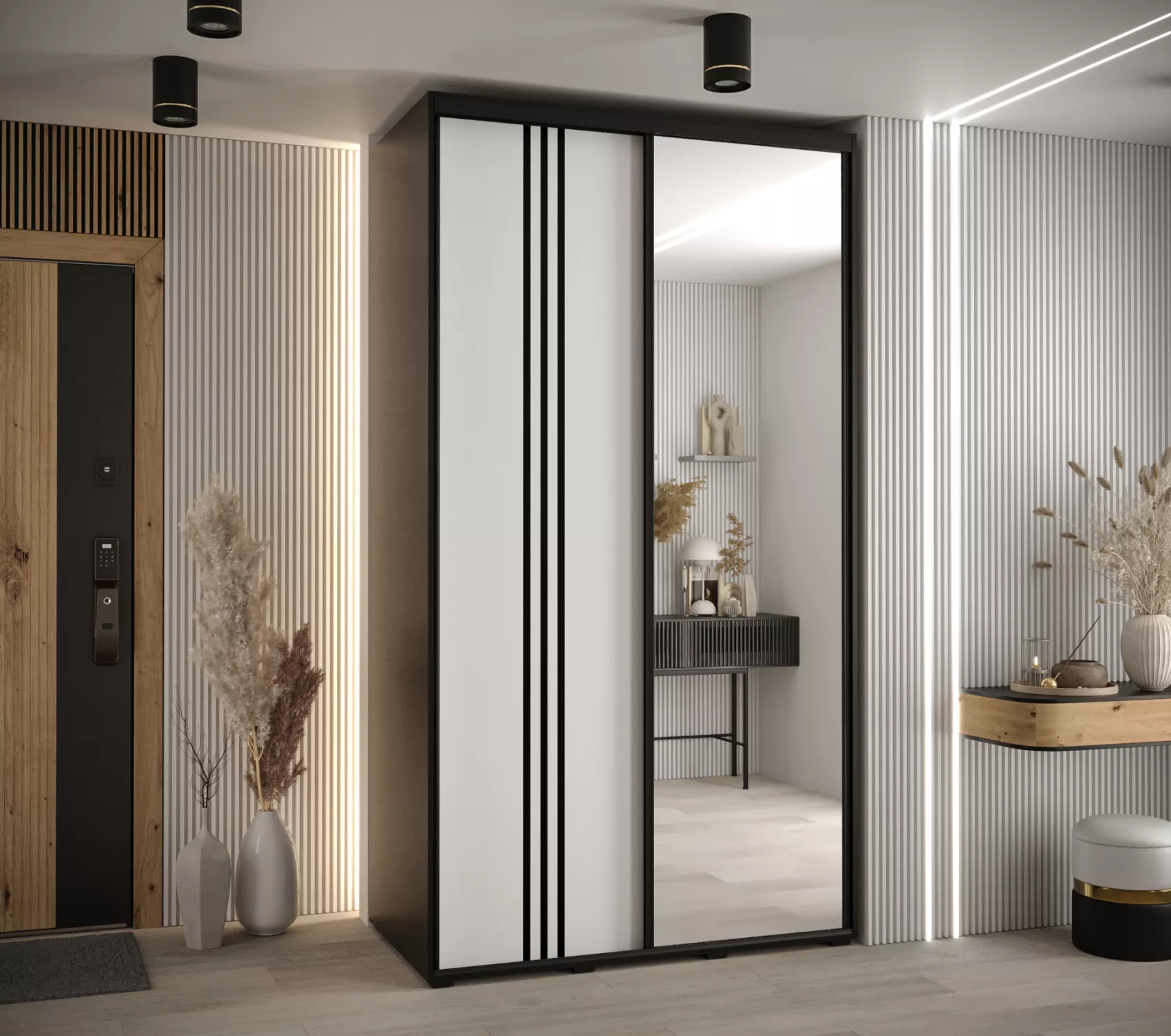 Šatní skříň ASIRI 7 - 130/45 cm, černá / bílá / černá