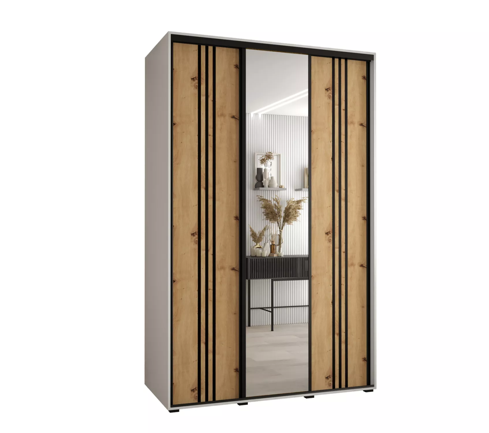 Šatní skříň ASIRI 7 - 160/45 cm, bílá / dub artisan / černá