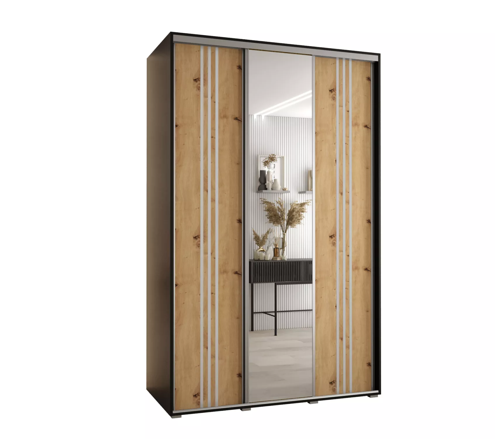 Šatní skříň ASIRI 7 - 160/45 cm, černá / dub artisan / stříbrná