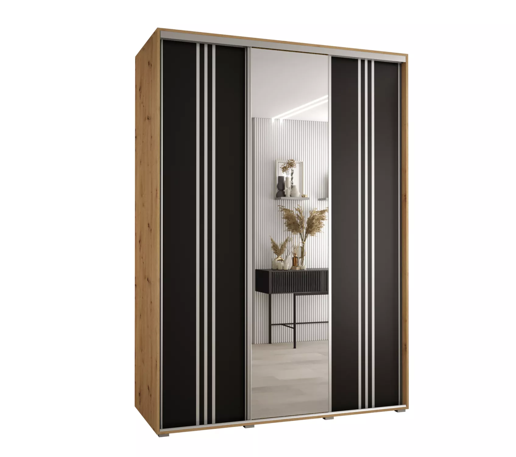 Šatní skříň ASIRI 7 - 170/45 cm, dub artisan / černá / stříbrná