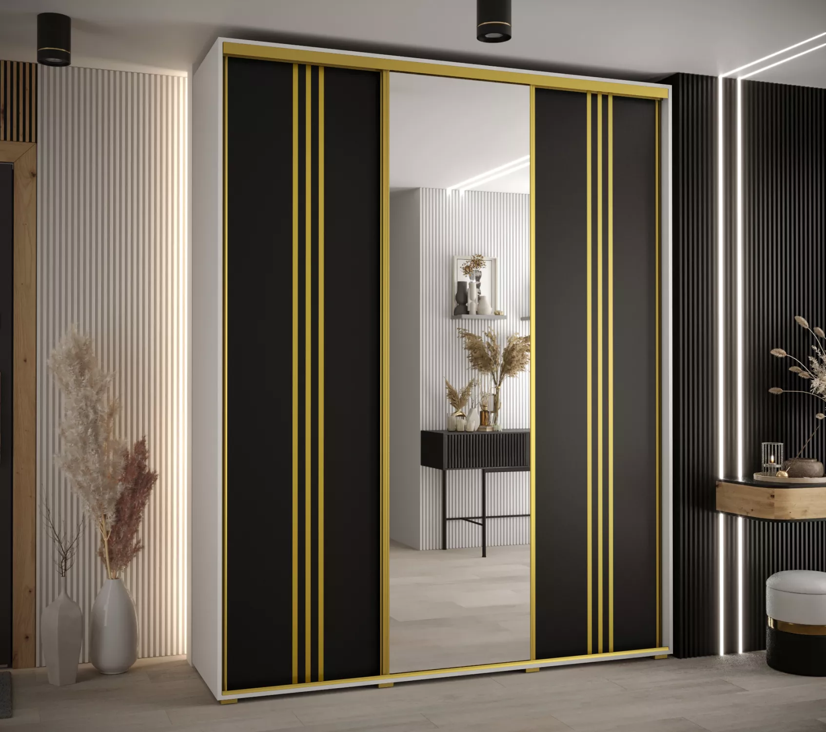 Šatní skříň ASIRI 7 - 190/45 cm, bílá / černá / zlatá