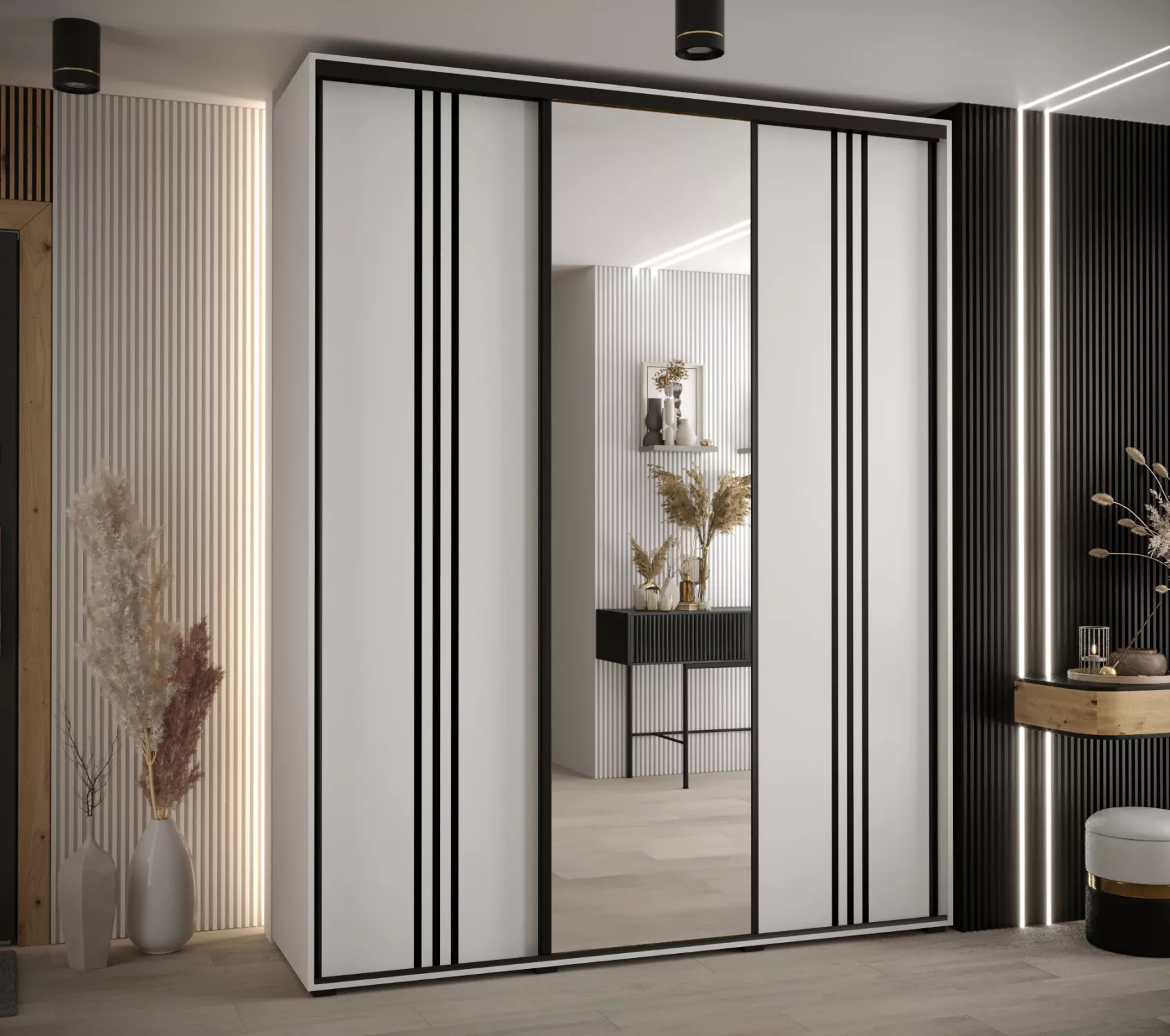 Šatní skříň ASIRI zaujme svým moderním designem a praktickými prvky. Šatní skříň má posuvné dveře, které se neotvírají do prostoru a ušetří tak spoustu místa.