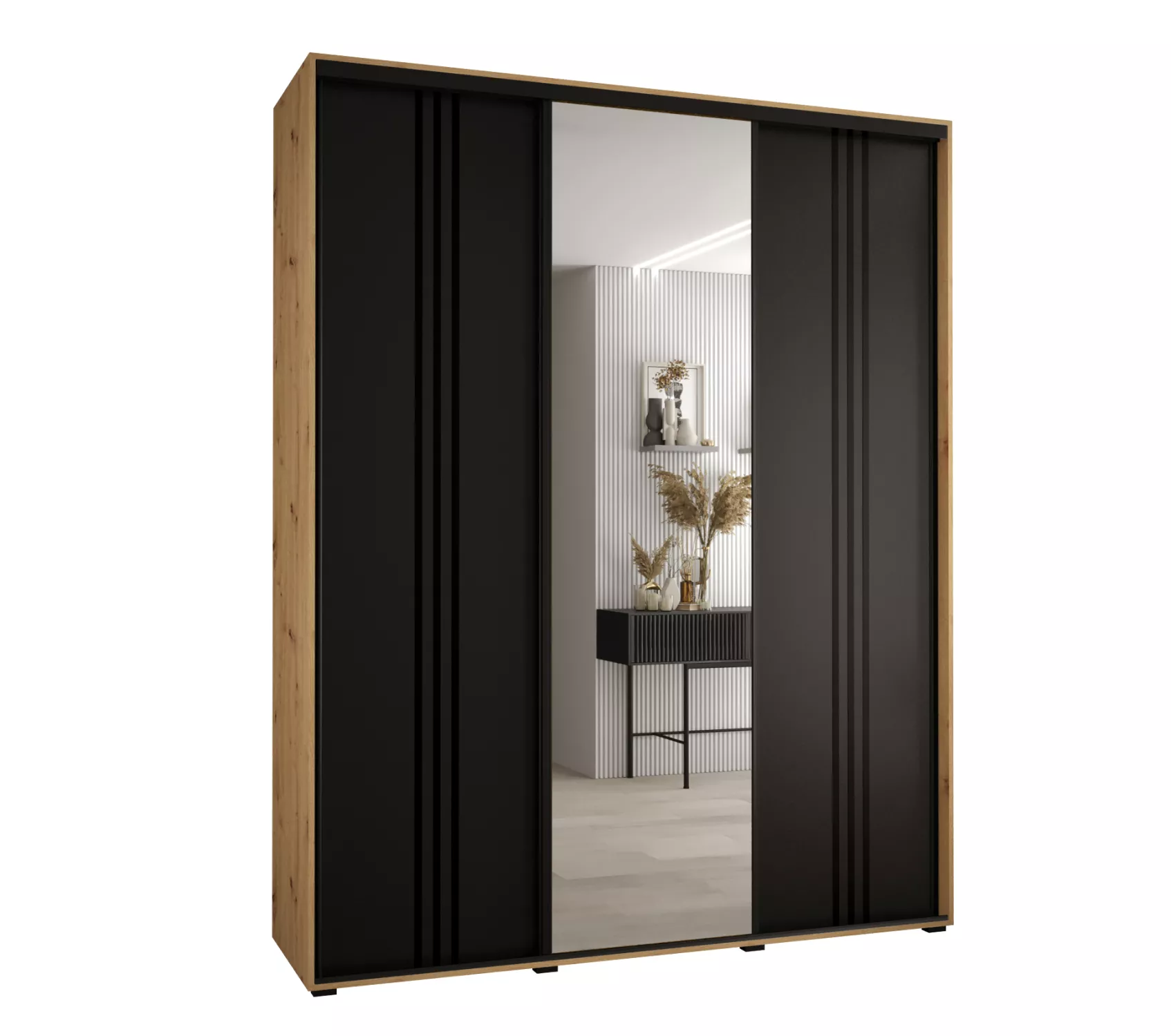 Šatní skříň ASIRI 7 - 190/45 cm, dub artisan / černá / černá
