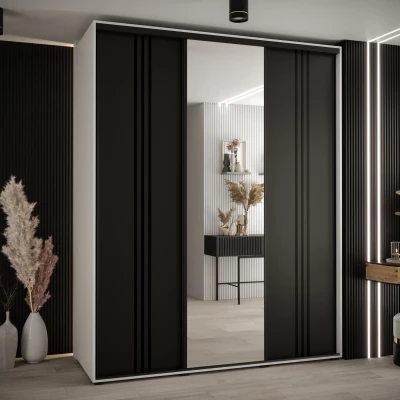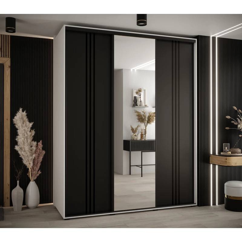 Šatní skříň ASIRI 7 - 200/45 cm, bílá / černá / černá