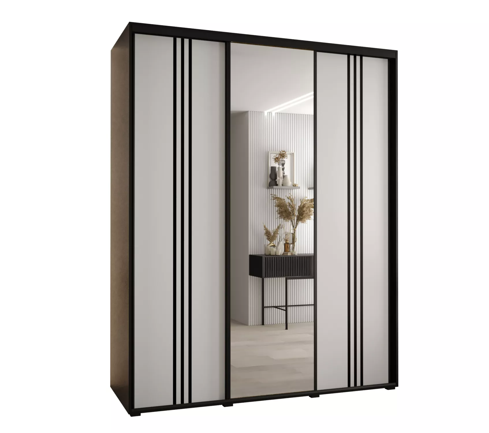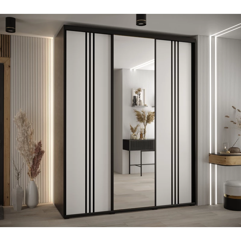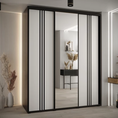 Šatní skříň ASIRI 7 - 200/45 cm, černá / bílá / černá