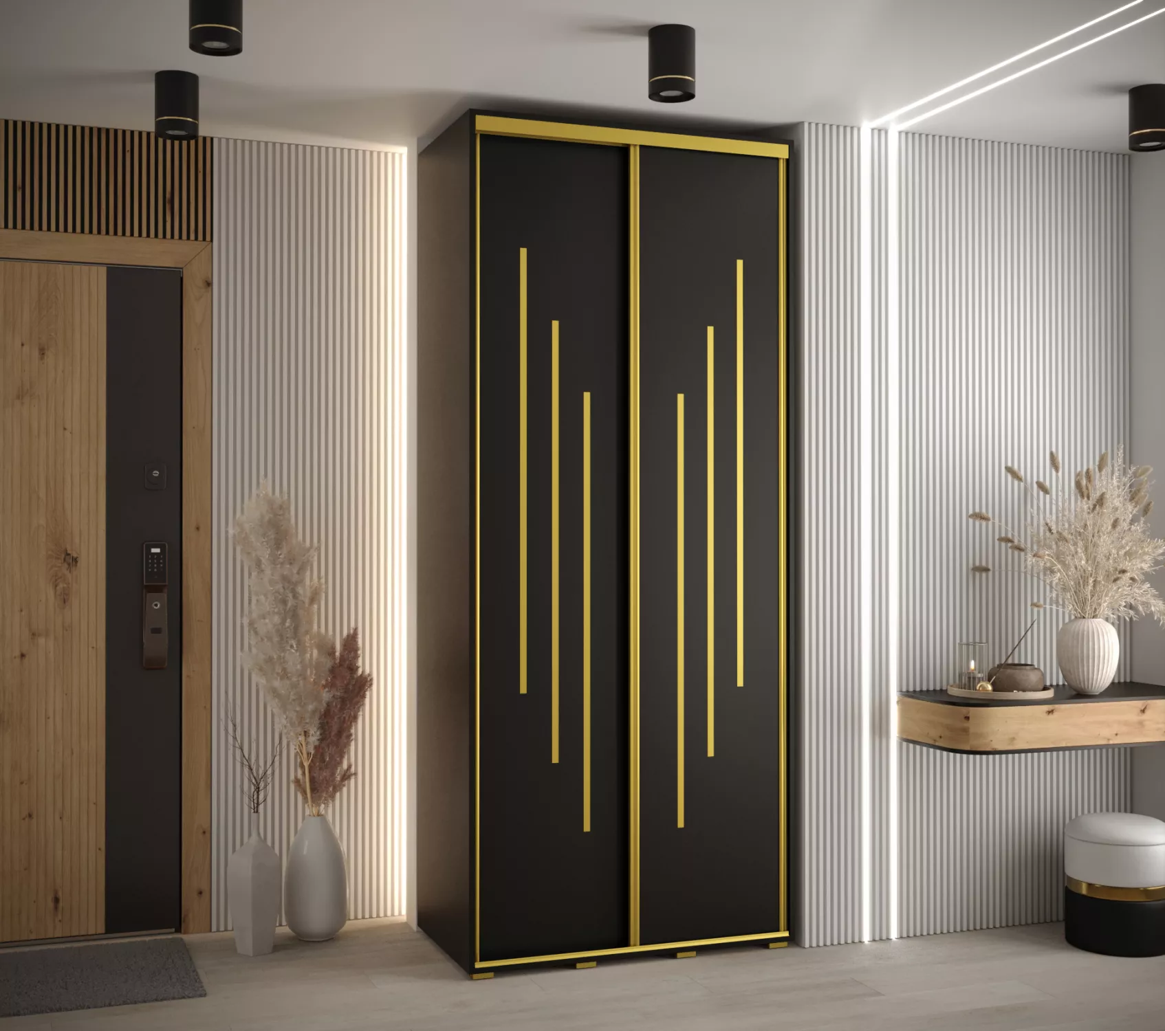 Šatní skříň ASIRI 8 - 100/45 cm, černá / zlatá