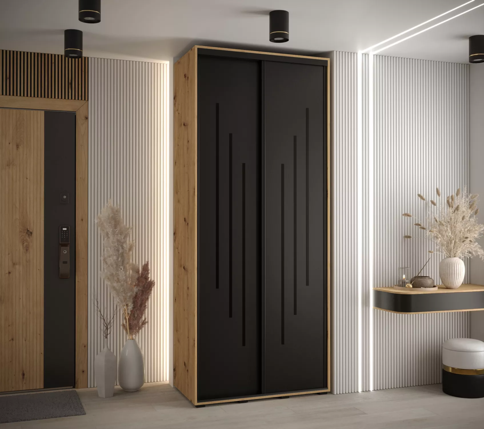 Šatní skříň ASIRI 8 - 120/45 cm, dub artisan / černá / černá