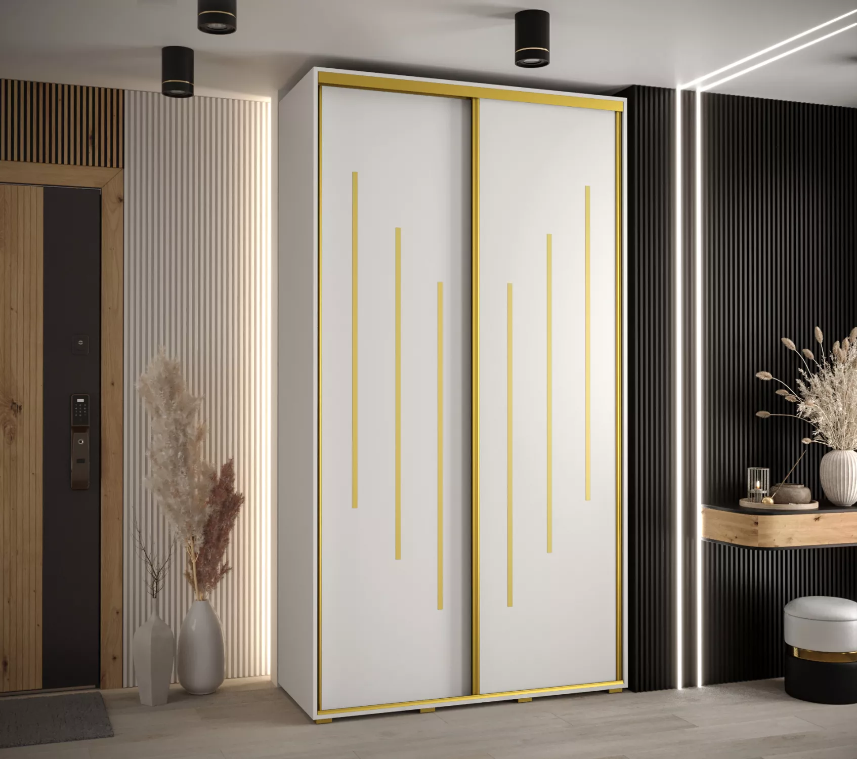 Šatní skříň ASIRI 8 - 140/45 cm, bílá / zlatá