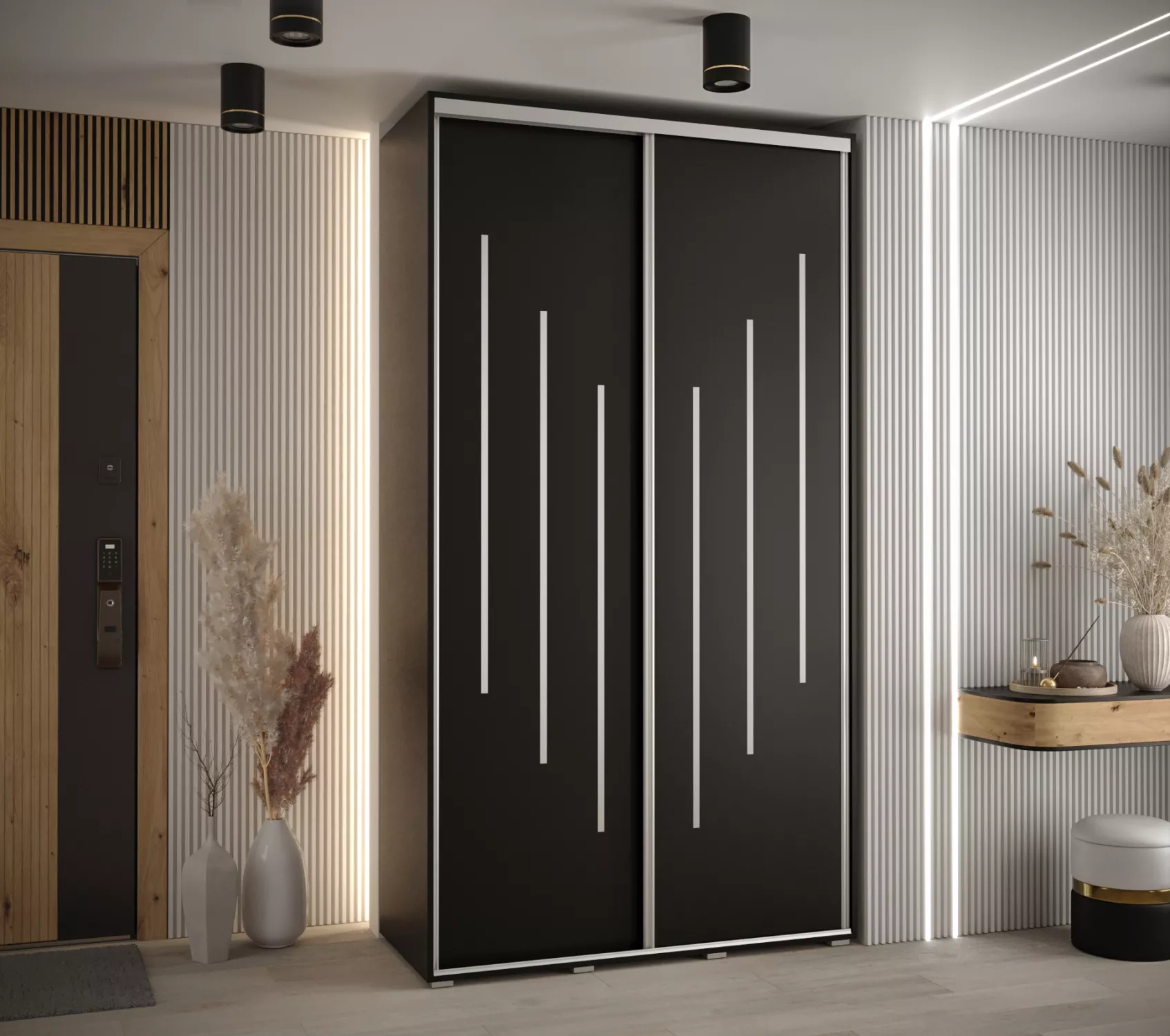 Šatní skříň ASIRI 8 - 140/45 cm, černá / stříbrná