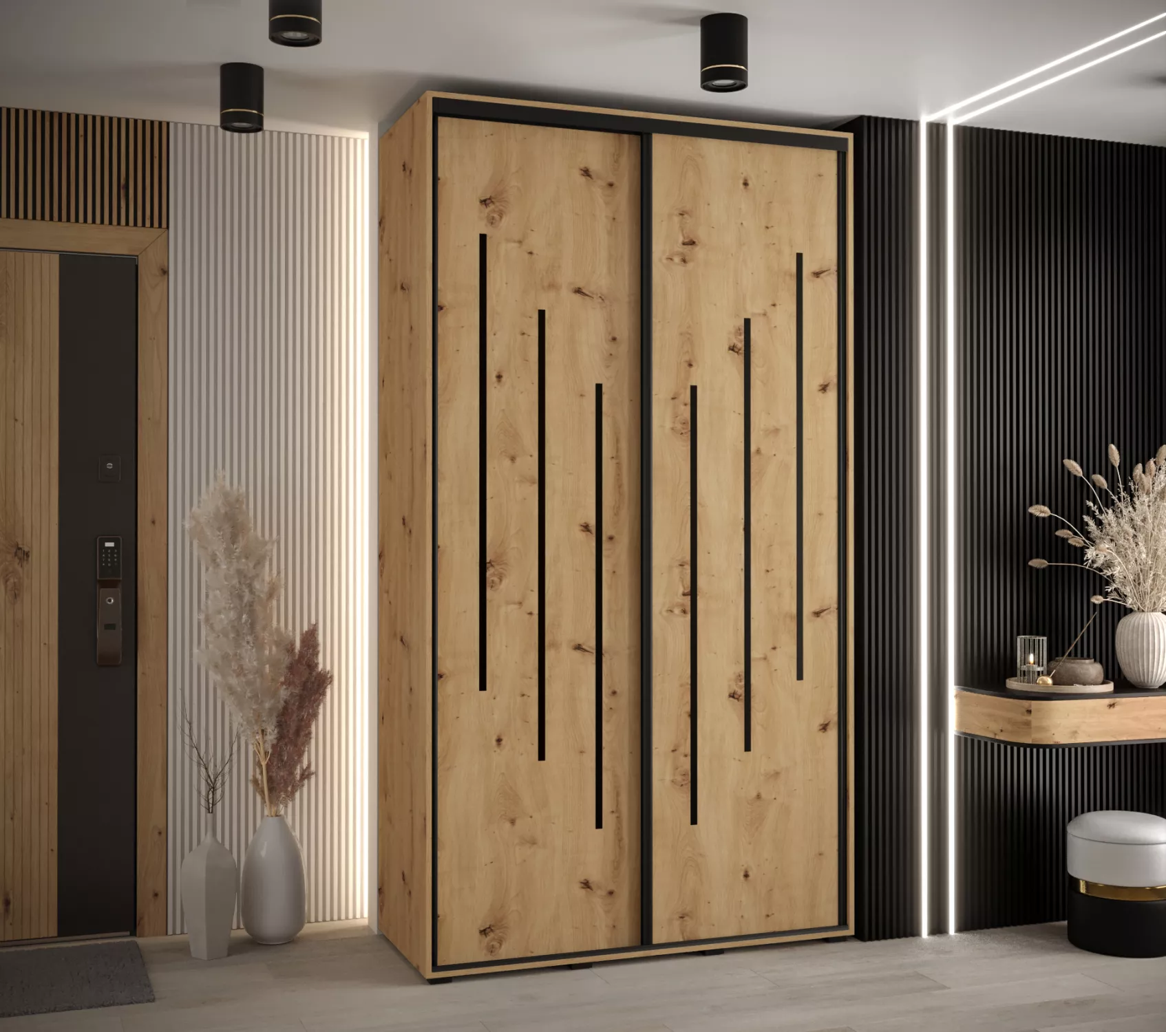 Šatní skříň ASIRI 8 - 140/45 cm, dub artisan / černá