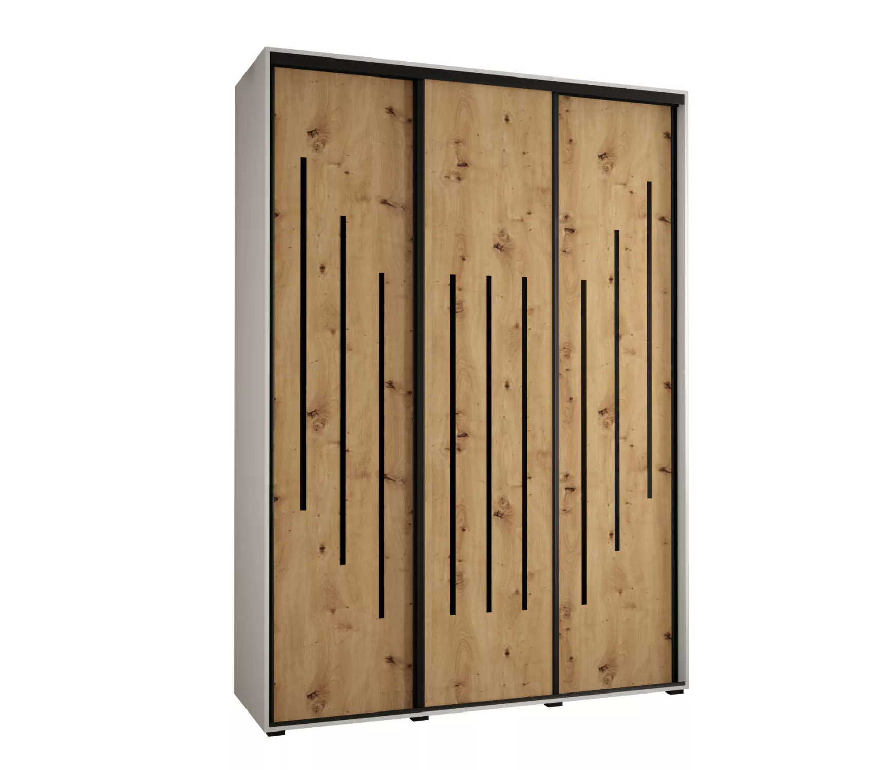 Šatní skříň ASIRI 8 - 170/45 cm, bílá / dub artisan / černá