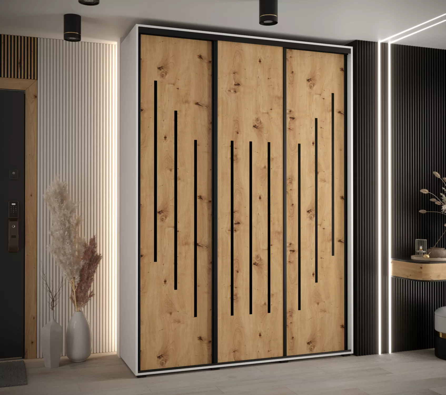 Šatní skříň ASIRI 8 - 180/45 cm, bílá / dub artisan / černá