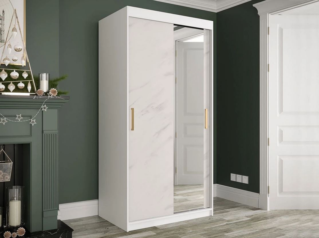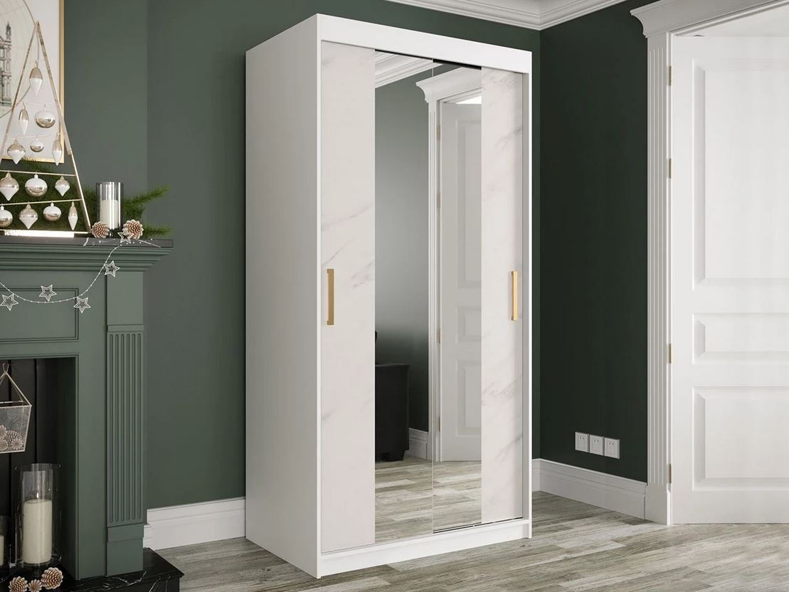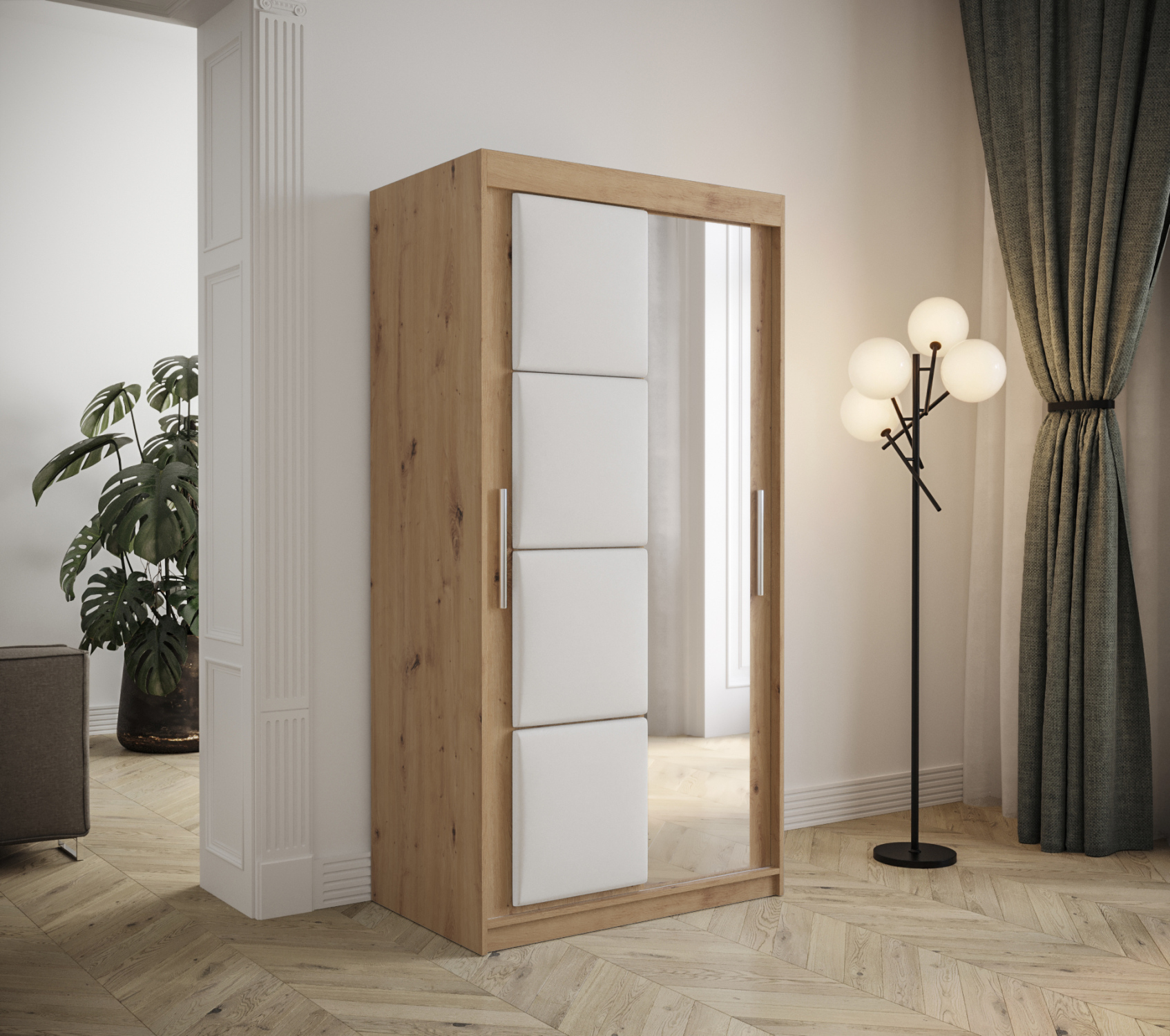 Šatní skříň ASIRI zaujme svým moderním designem a praktickými prvky. Šatní skříň má posuvné dveře, které se neotvírají do prostoru a ušetří tak spoustu místa.