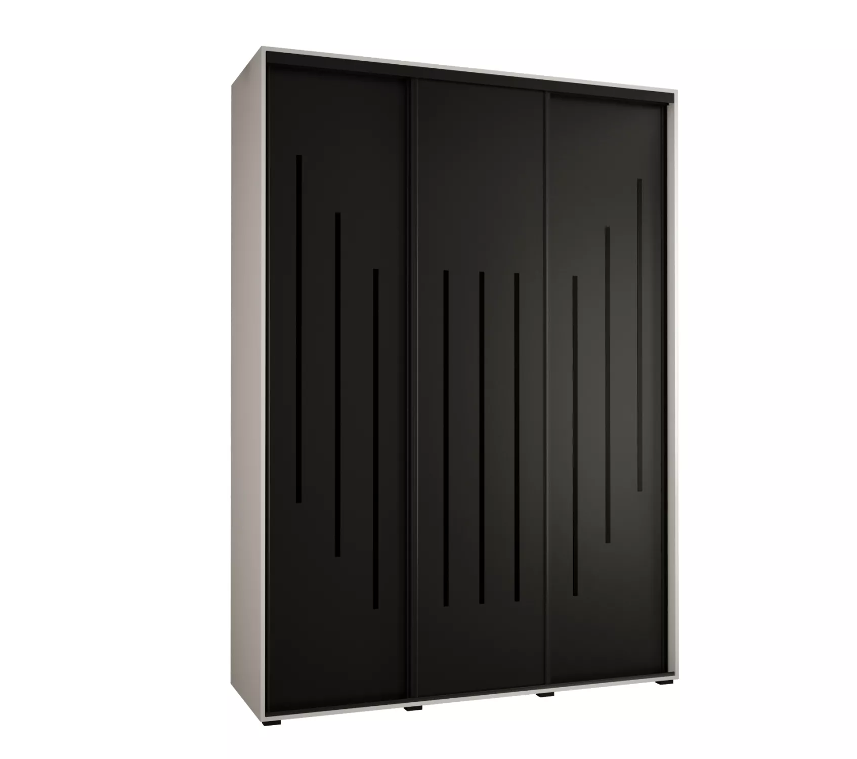Šatní skříň ASIRI 8 - 180/45 cm, bílá / černá / černá
