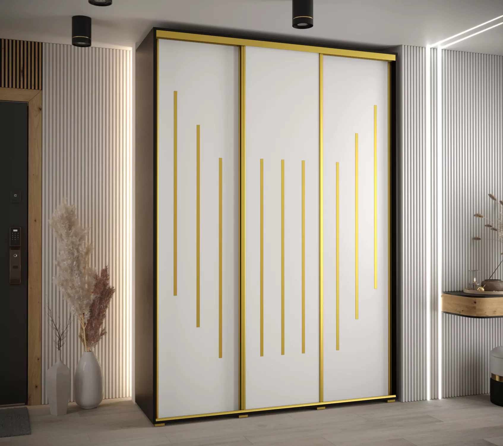 Šatní skříň ASIRI 8 - 180/45 cm, černá / bílá / zlatá