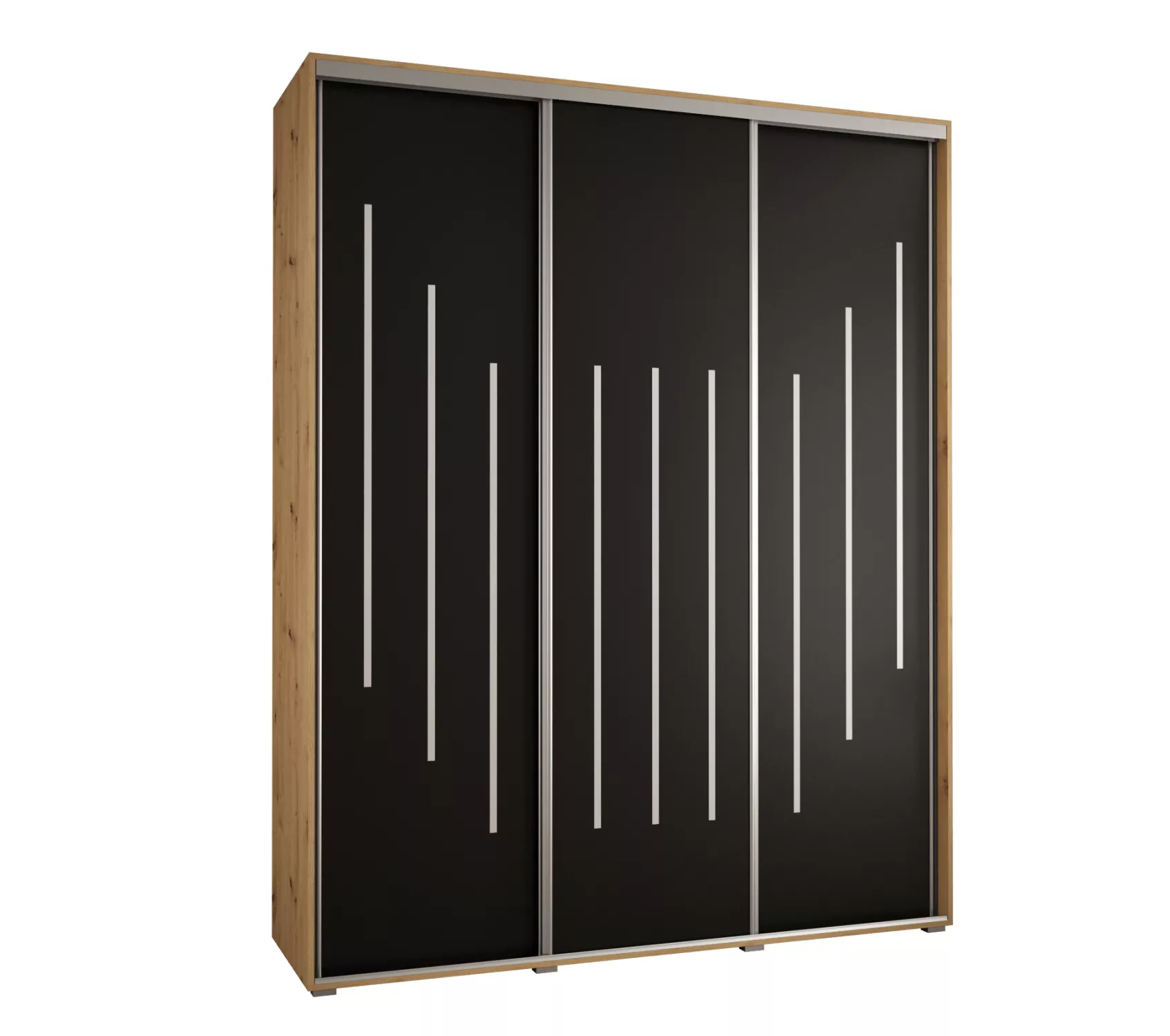 Šatní skříň ASIRI 8 - 190/45 cm, dub artisan / černá / stříbrná