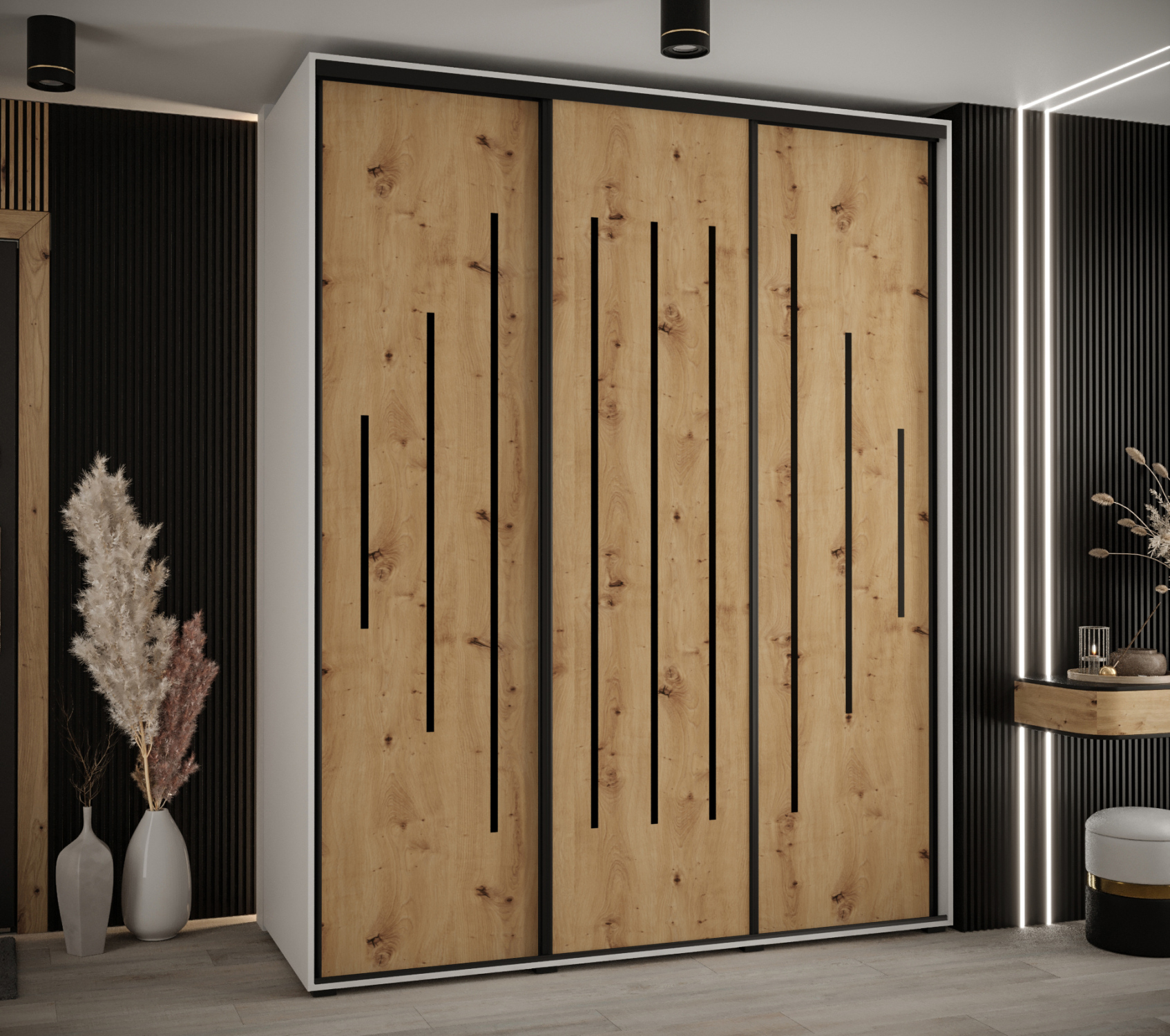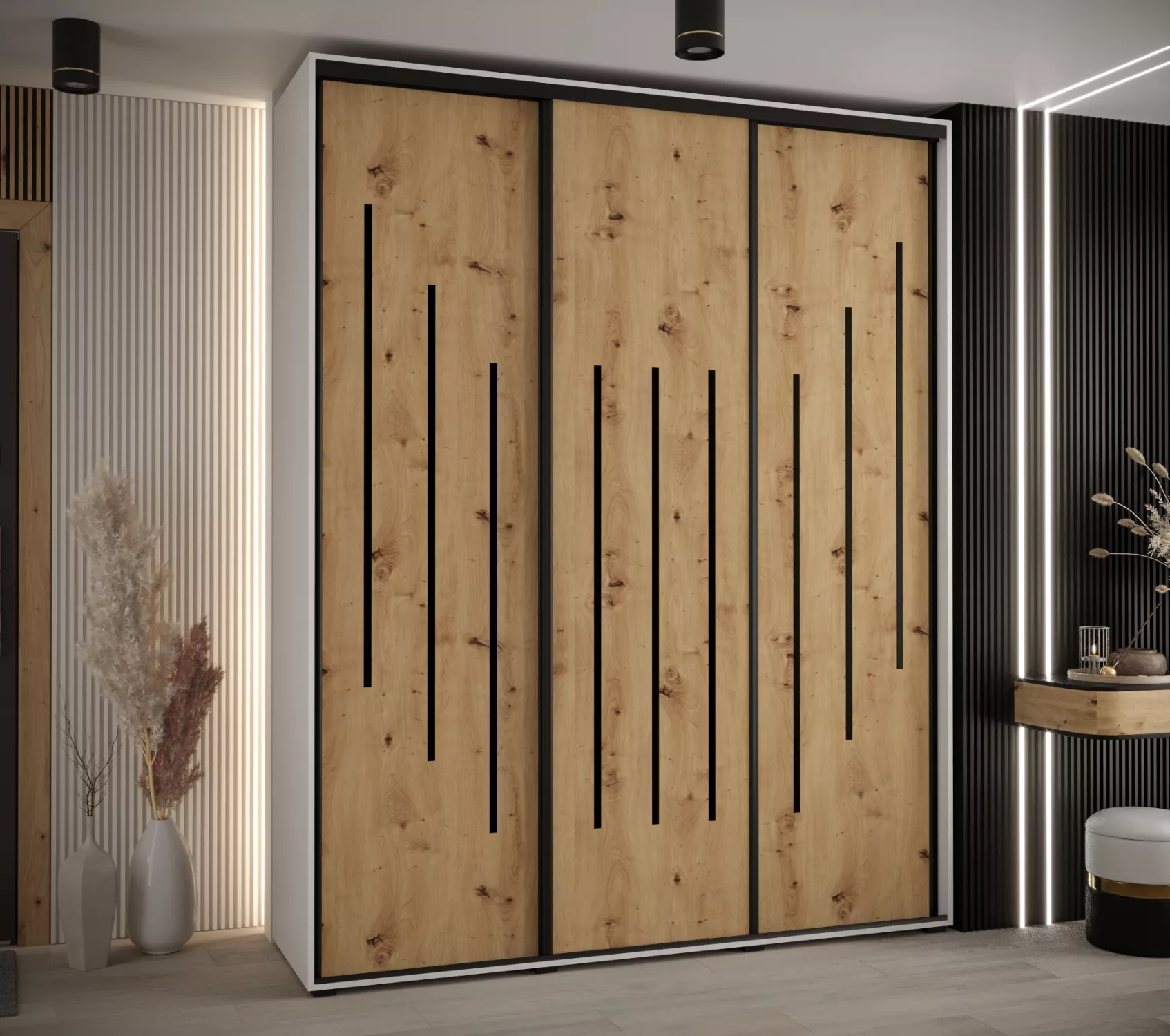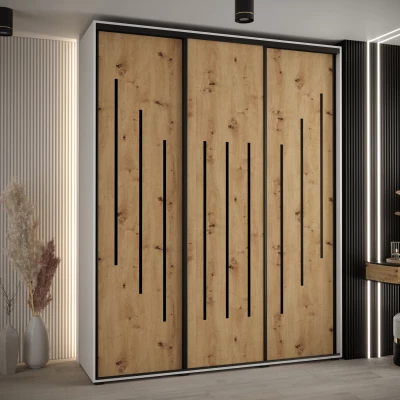 Šatní skříň ASIRI 8 - 200/45 cm, bílá / dub artisan / černá
