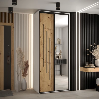 Šatní skříň ASIRI 9 - 100/45 cm, bílá / dub artisan / černá