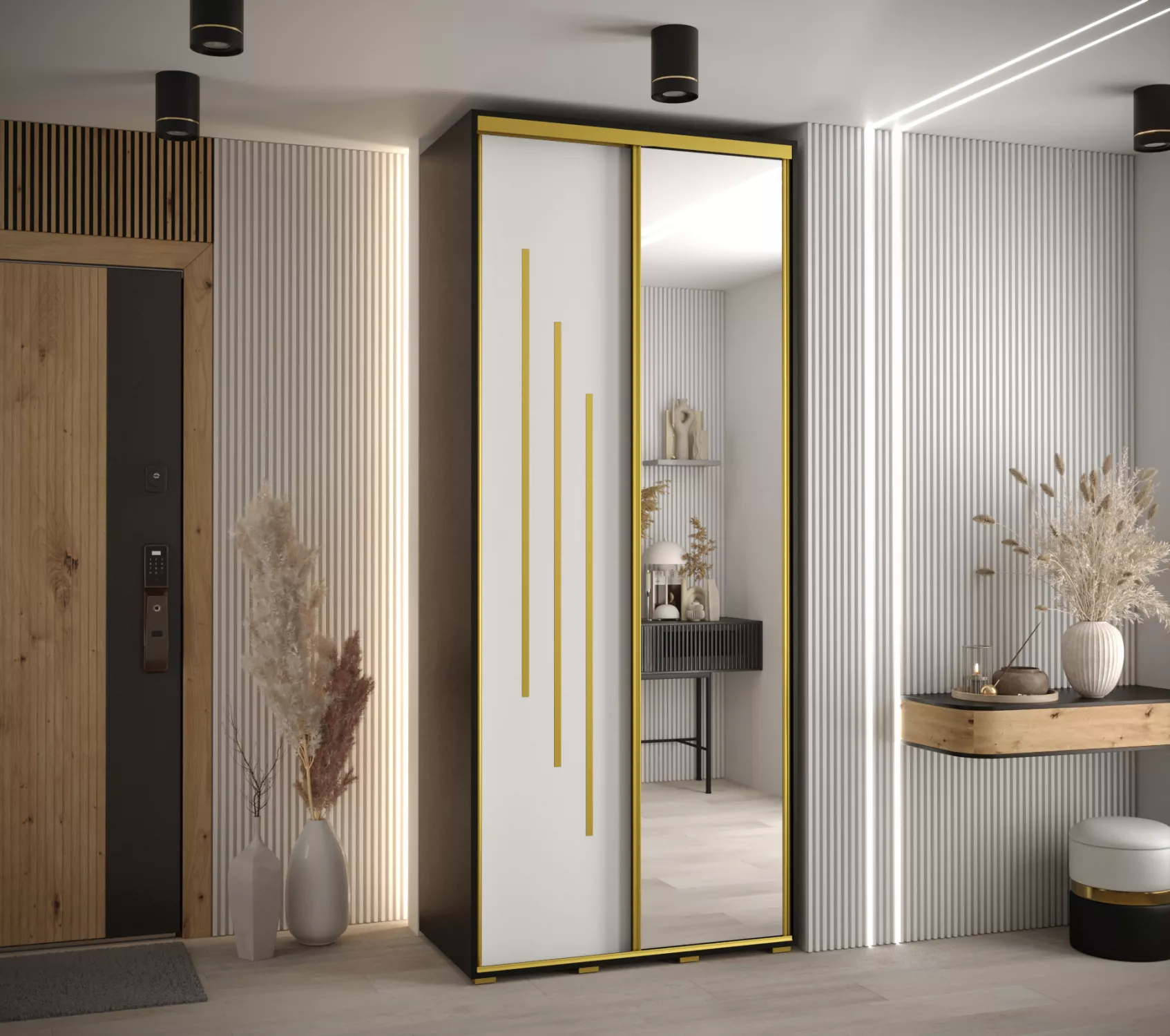 Šatní skříň ASIRI 9 - 100/45 cm, černá / bílá / zlatá