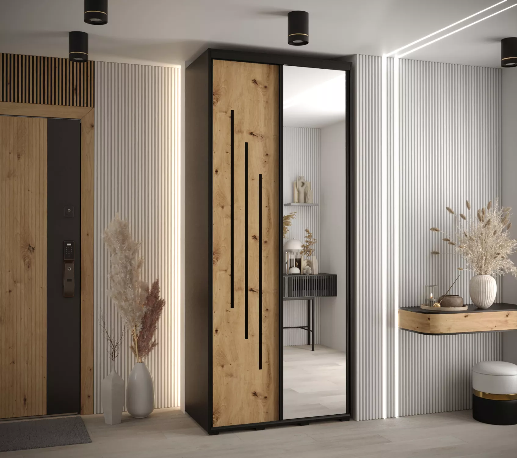 Šatní skříň ASIRI 9 - 110/45 cm, černá / dub artisan / černá