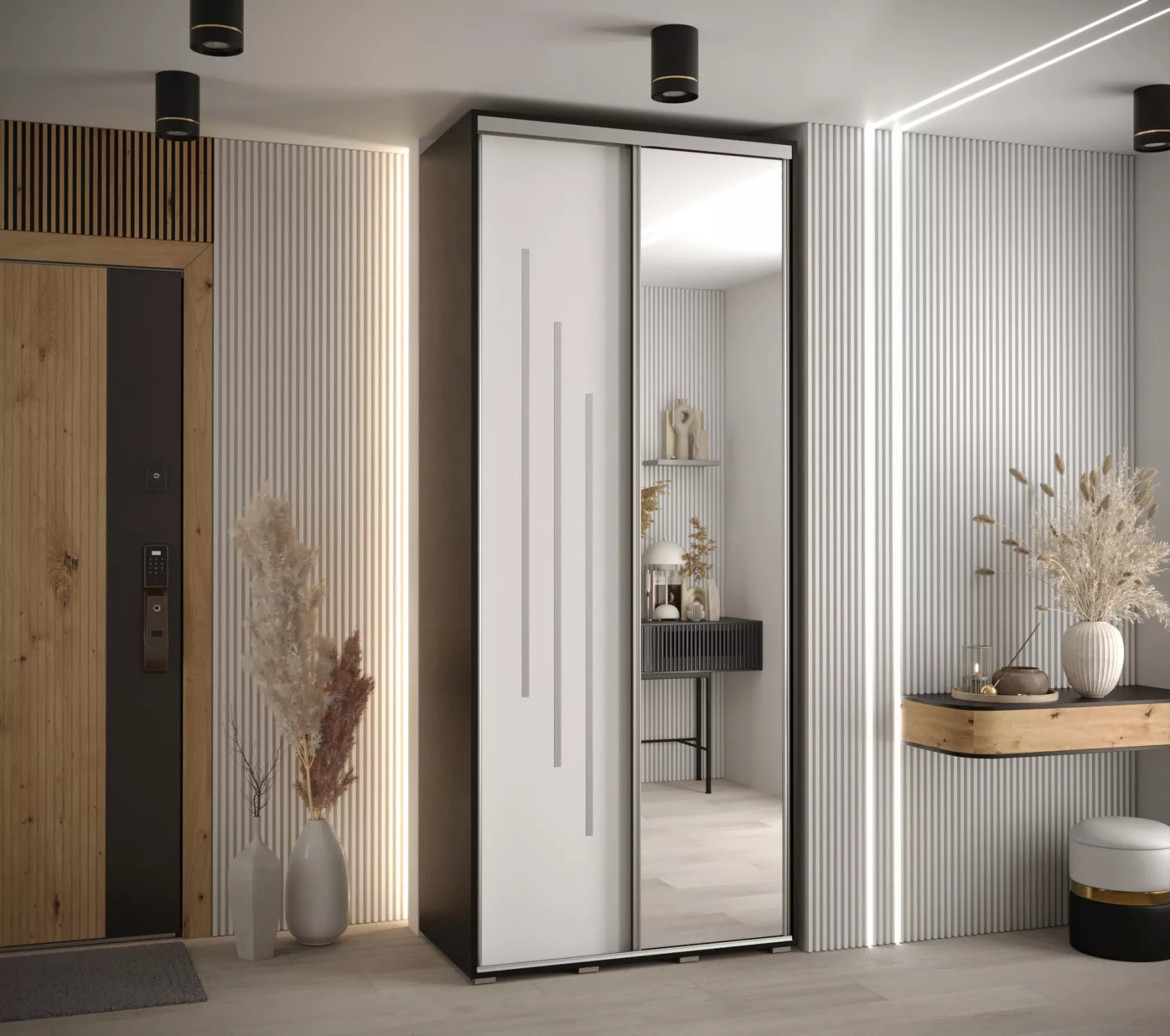 Šatní skříň ASIRI 9 - 110/45 cm, černá / bílá / stříbrná
