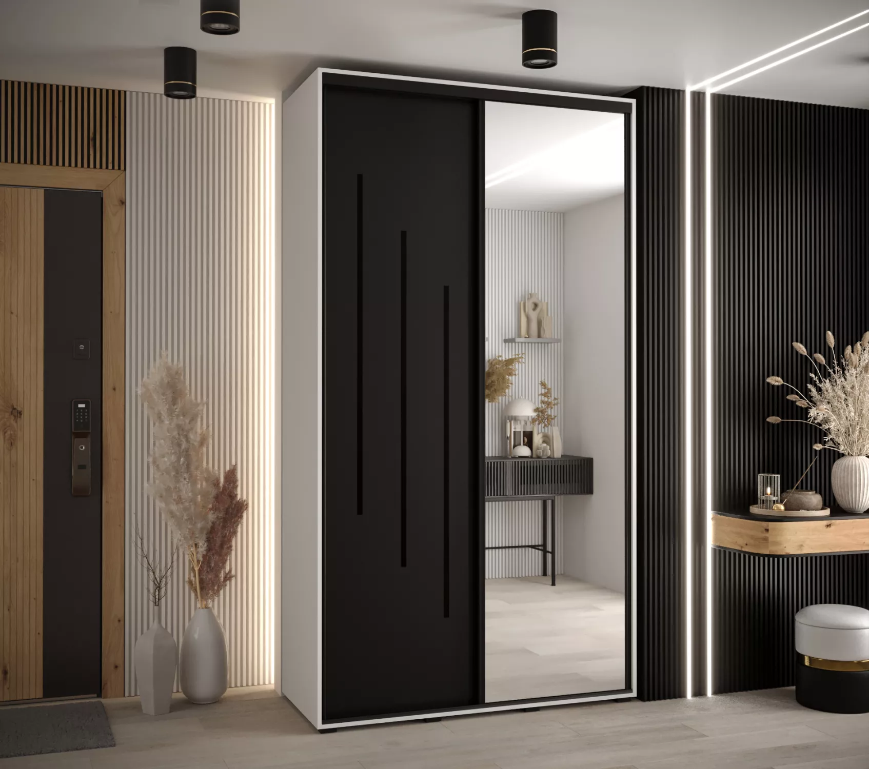 Šatní skříň ASIRI 9 - 140/45 cm, bílá / černá / černá