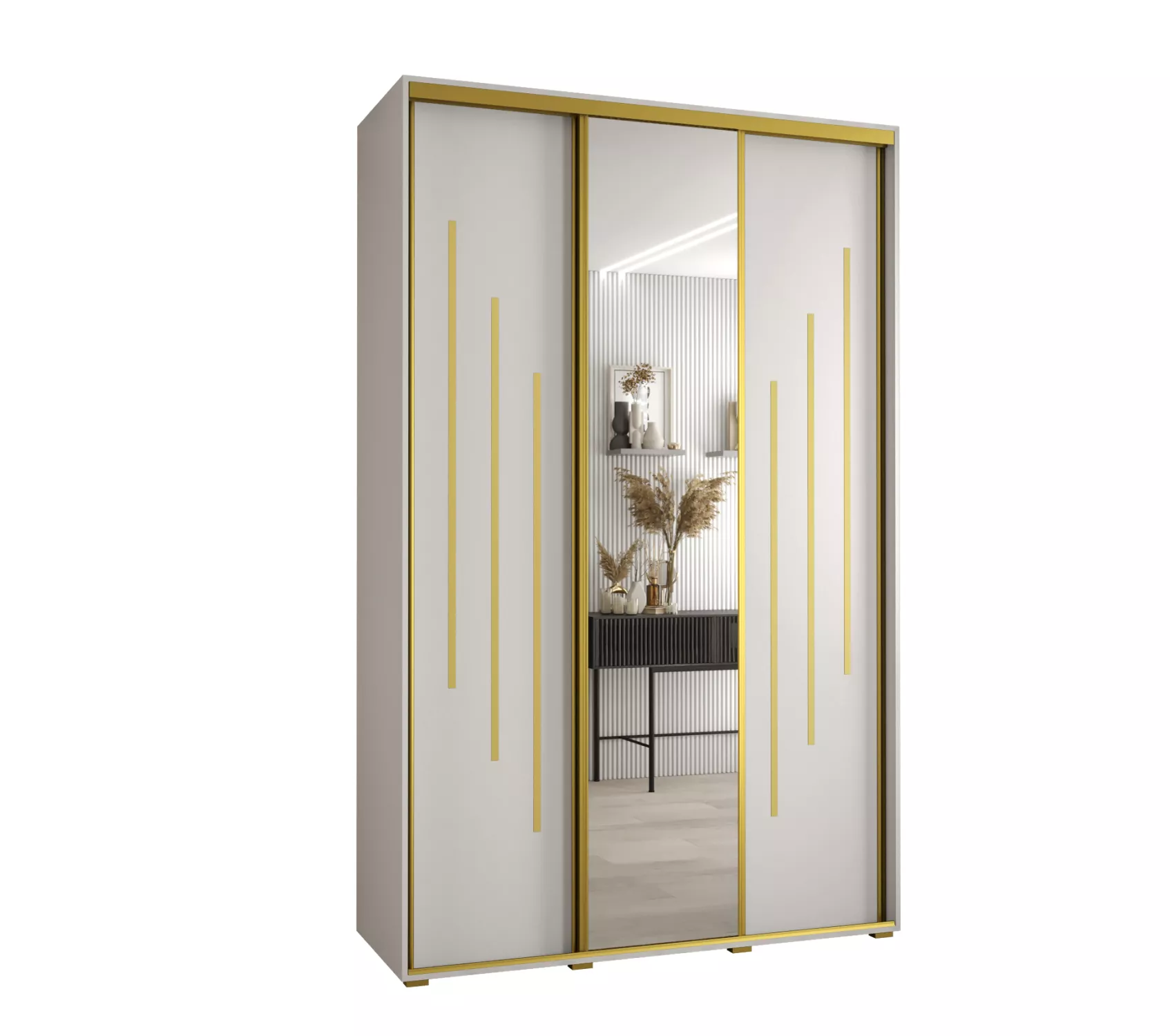 Šatní skříň ASIRI 9 - 150/45 cm, bílá / zlatá