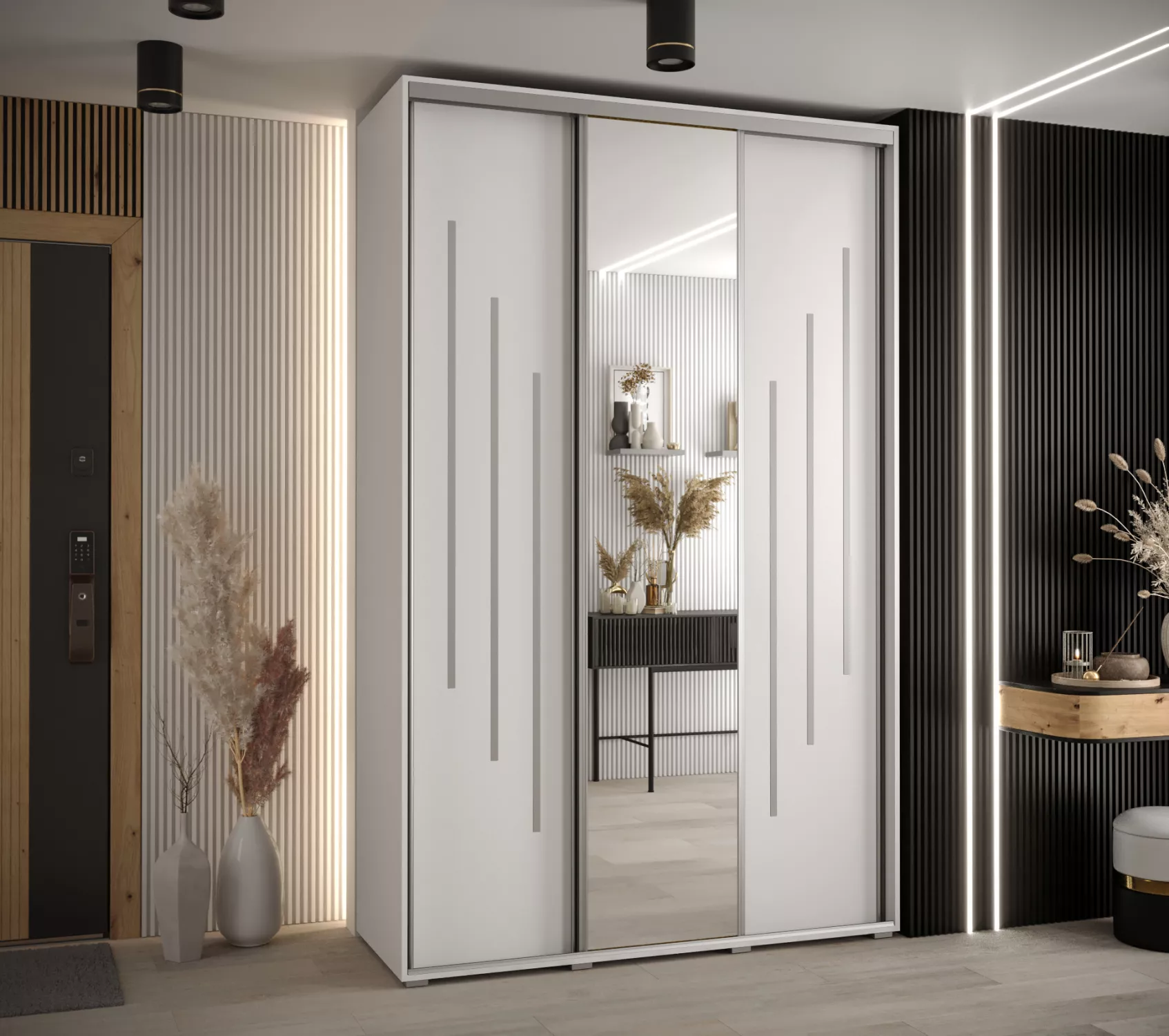 Šatní skříň ASIRI zaujme svým moderním designem a praktickými prvky. Šatní skříň má posuvné dveře, které se neotvírají do prostoru a ušetří tak spoustu místa.