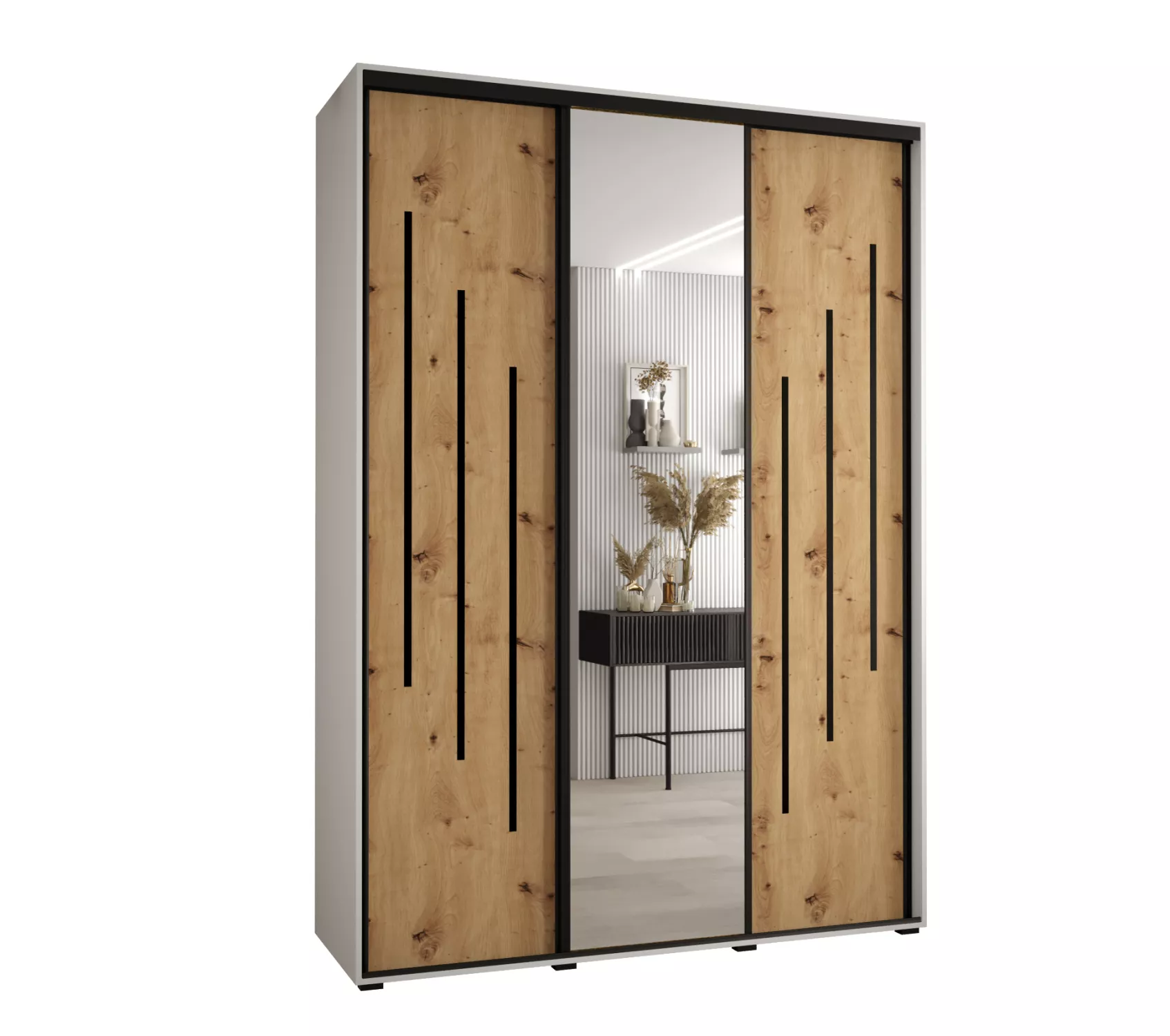 Šatní skříň ASIRI 9 - 170/45 cm, bílá / dub artisan / černá