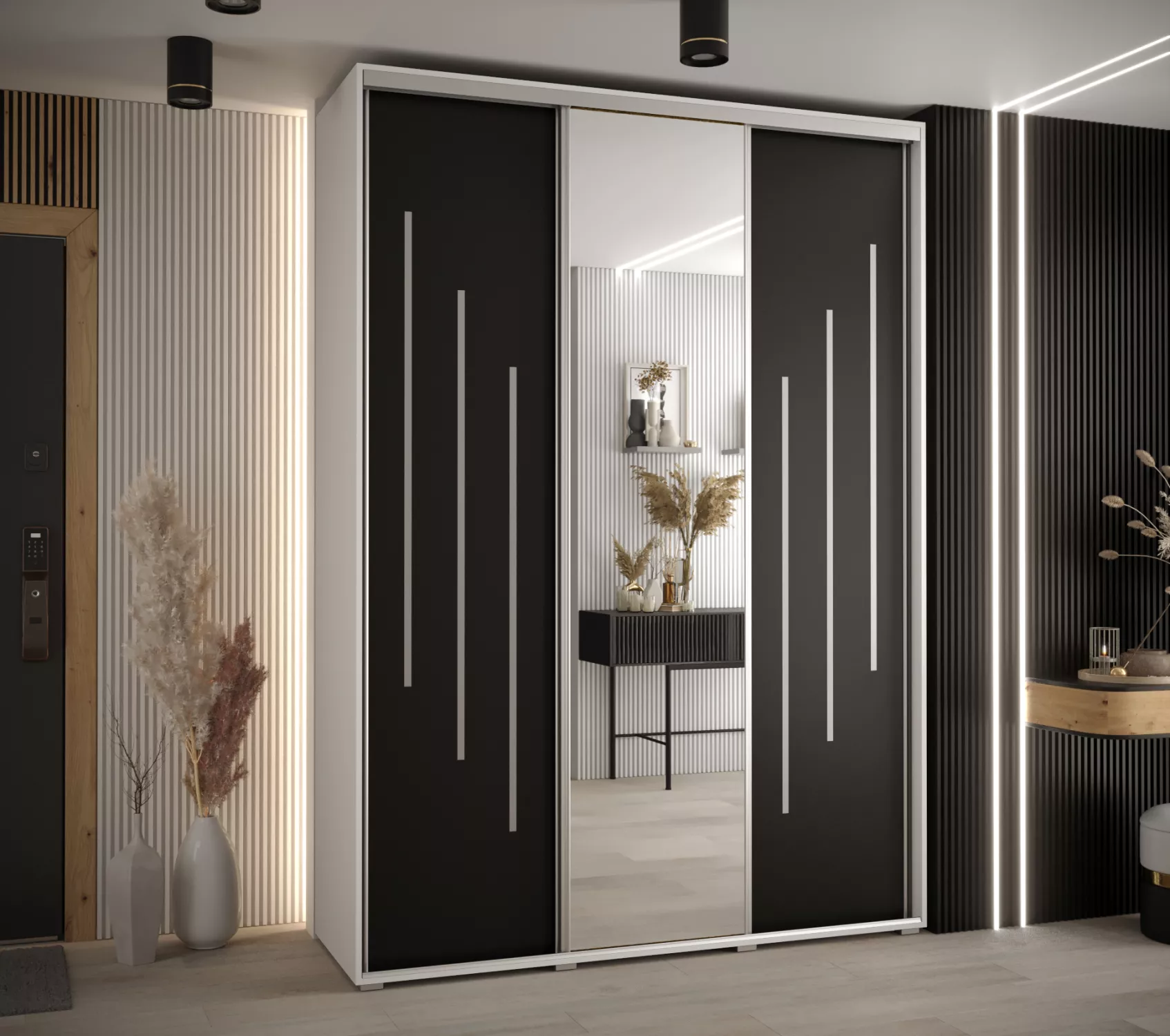 Šatní skříň ASIRI 9 - 180/45 cm, bílá / černá / stříbrná