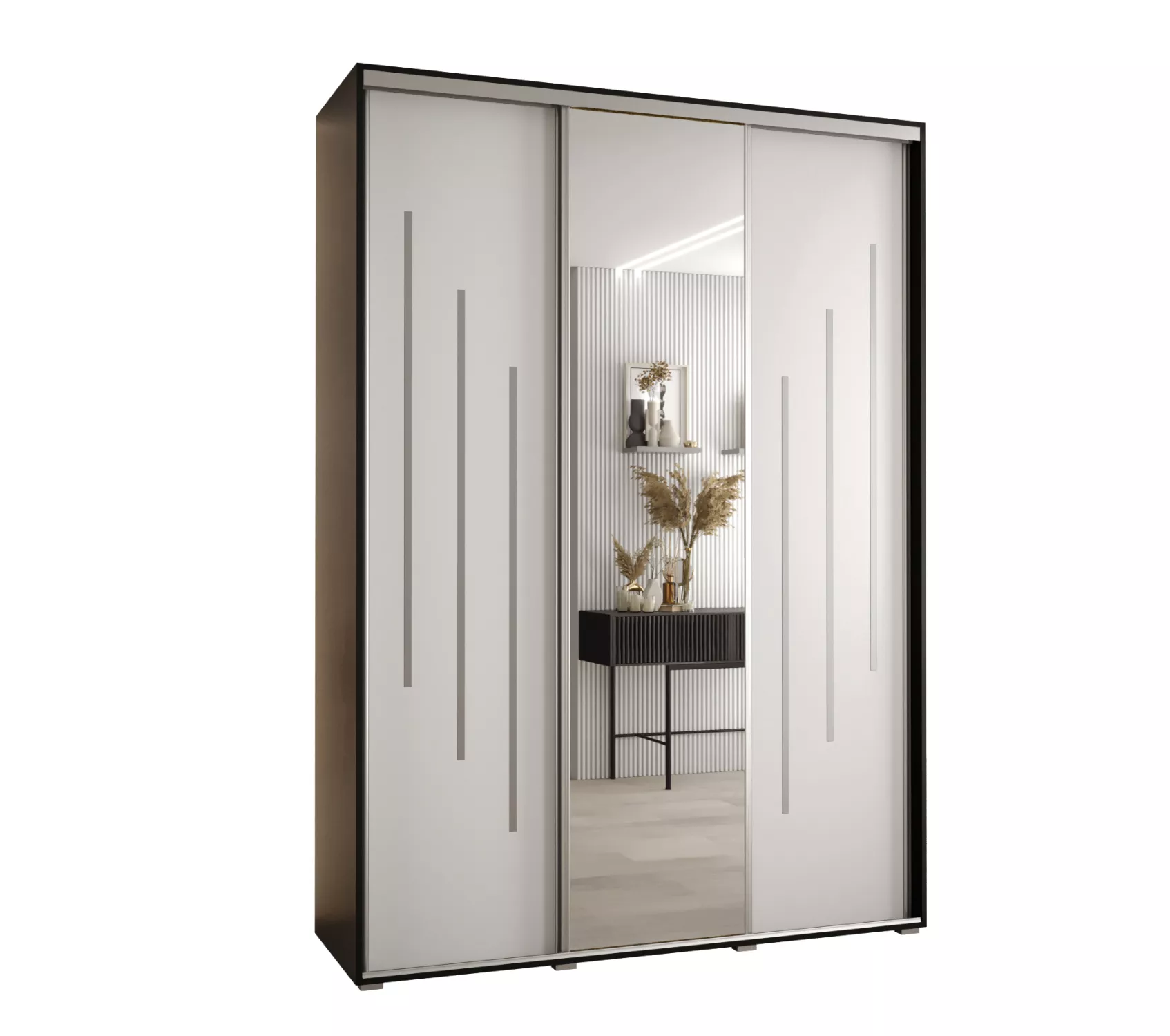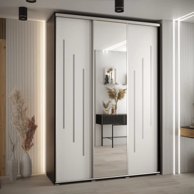 Šatní skříň ASIRI 9 - 180/45 cm, černá / bílá / stříbrná
