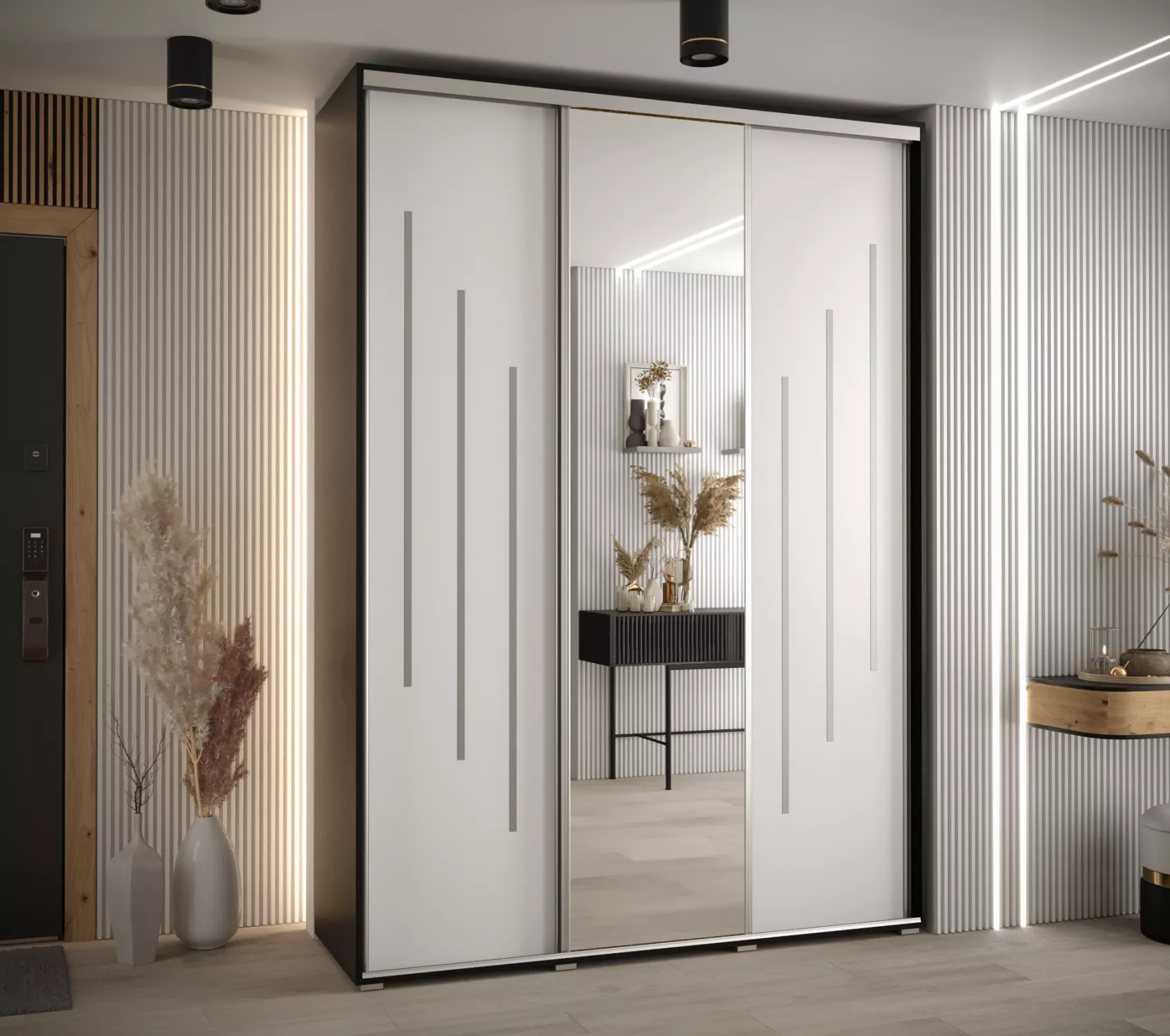 Šatní skříň ASIRI zaujme svým moderním designem a praktickými prvky. Šatní skříň má posuvné dveře, které se neotvírají do prostoru a ušetří tak spoustu místa.