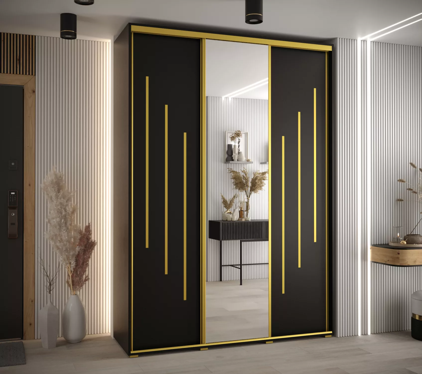 Šatní skříň ASIRI 9 - 180/45 cm, černá / zlatá
