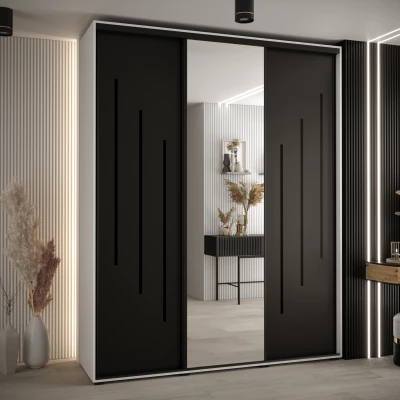Šatní skříň ASIRI 9 - 190/45 cm, bílá / černá / černá