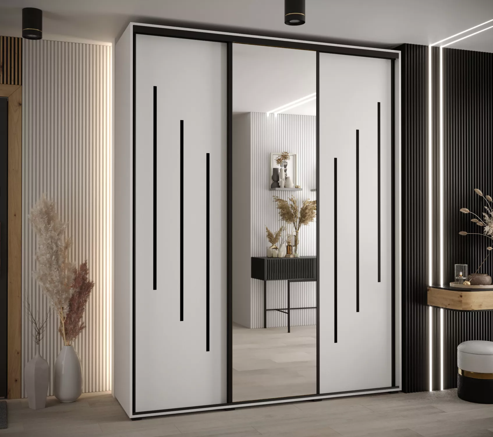 Šatní skříň ASIRI 9 - 200/45 cm, bílá / černá