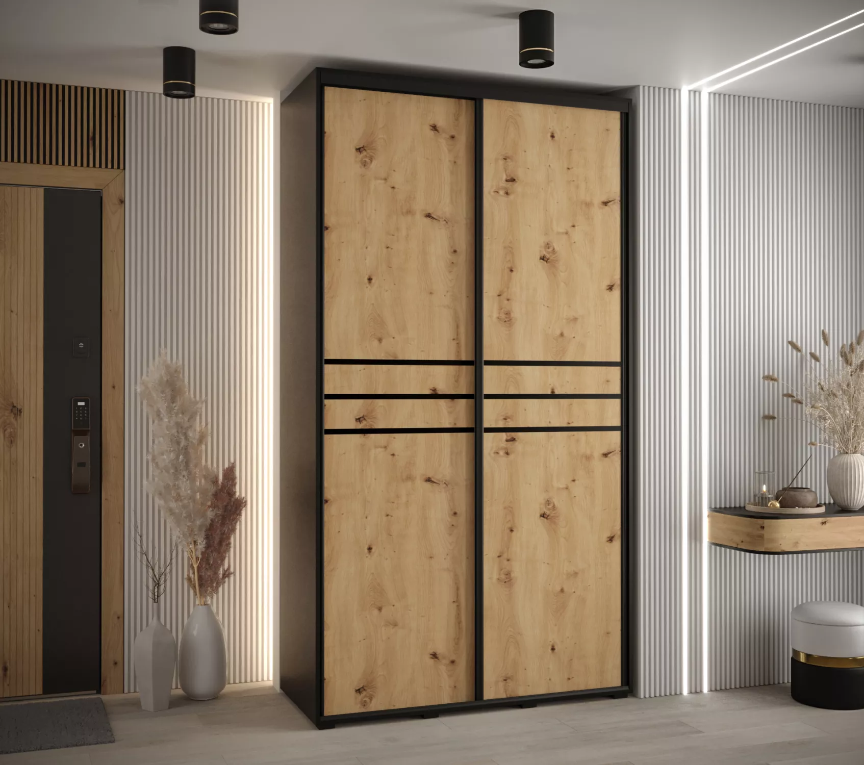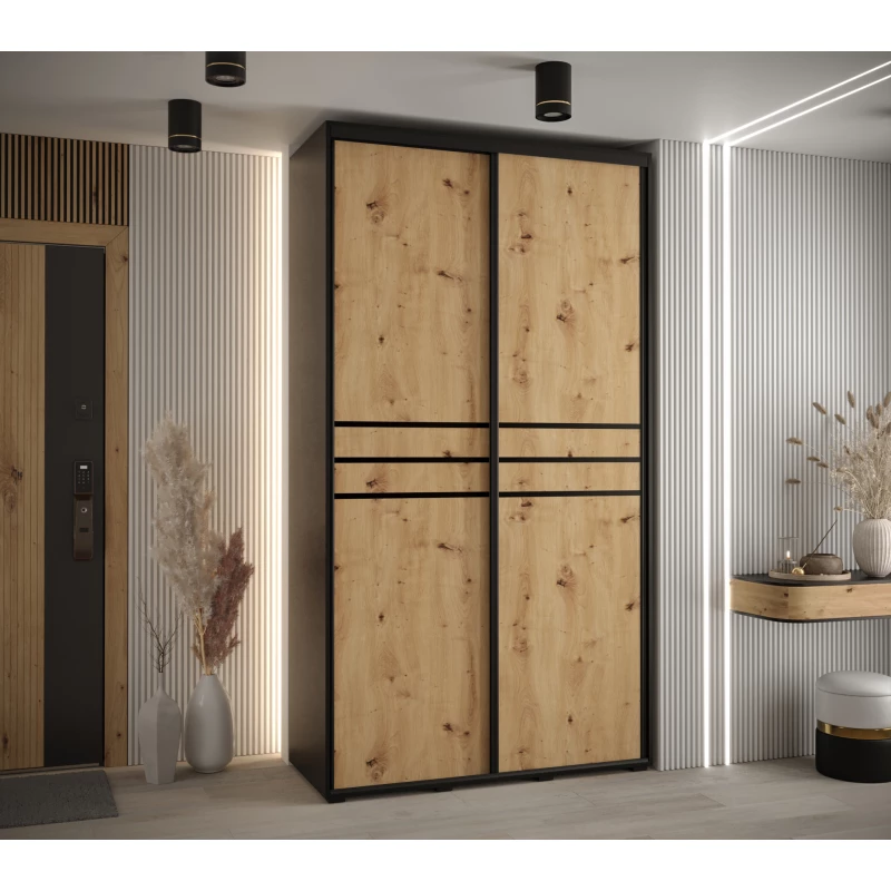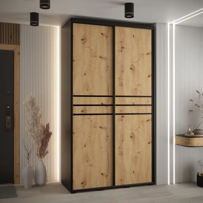 Šatní skříň ASIRI 10 - 130/45 cm, černá / dub artisan / černá