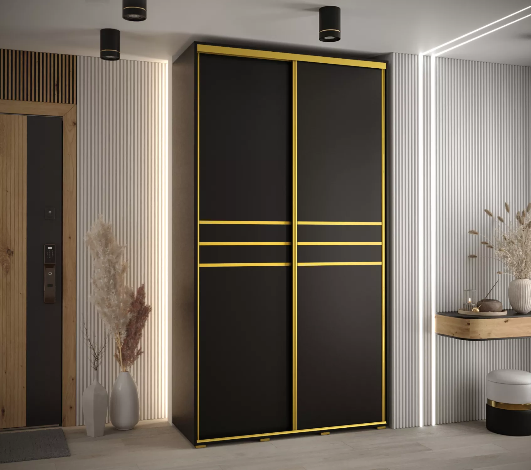 Šatní skříň ASIRI 10 - 130/45 cm, černá / zlatá