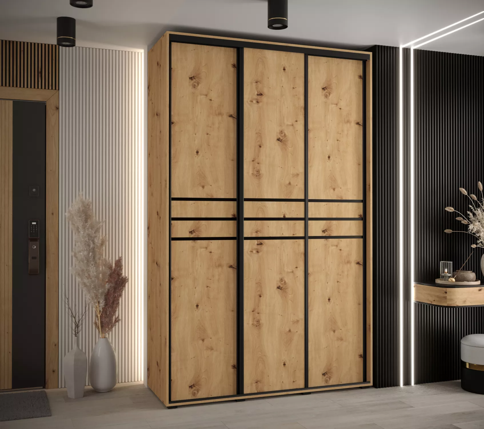 Šatní skříň ASIRI 10 - 160/45 cm, dub artisan / černá