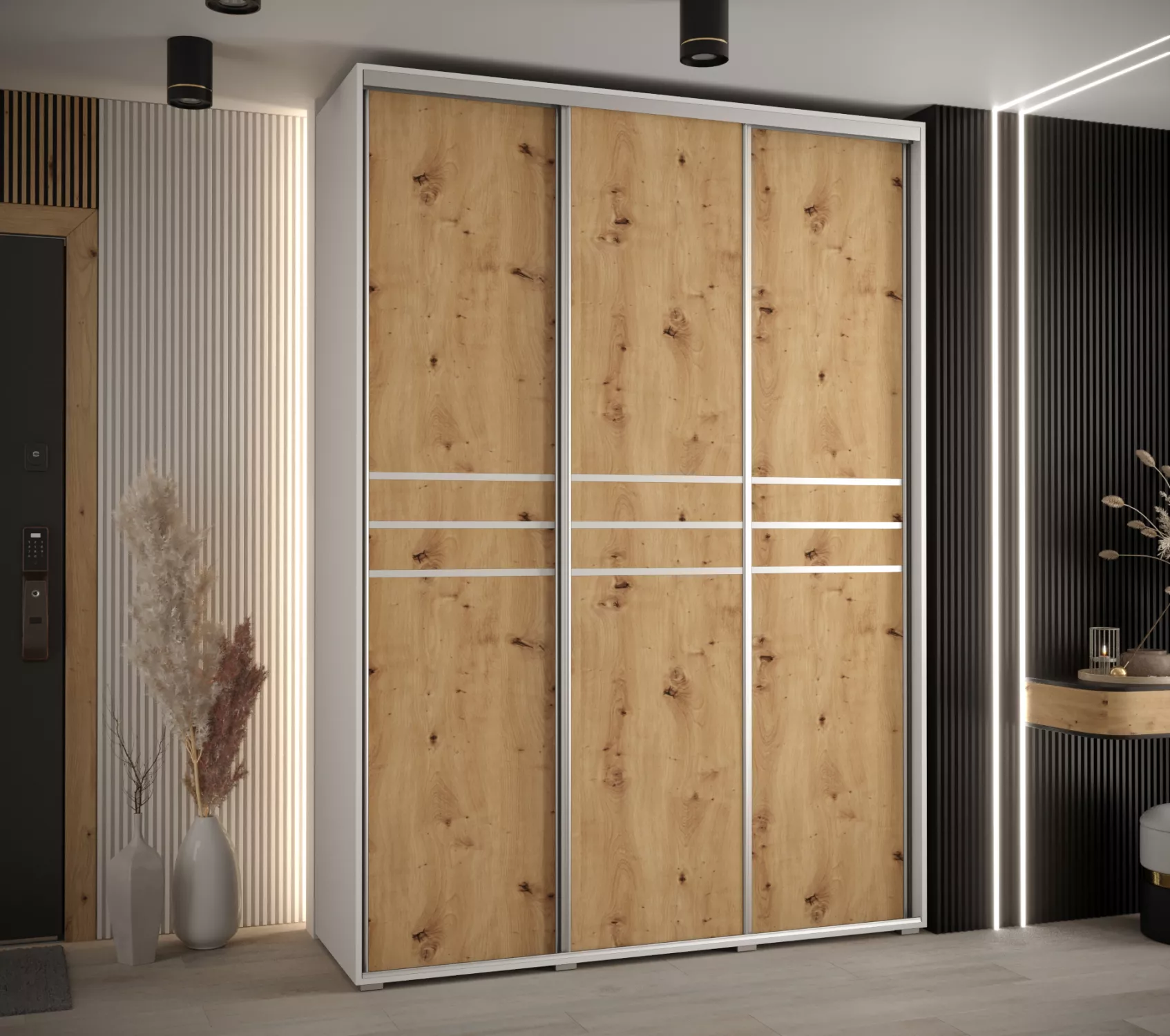 Šatní skříň ASIRI 10 - 170/45 cm, bílá / dub artisan / stříbrná