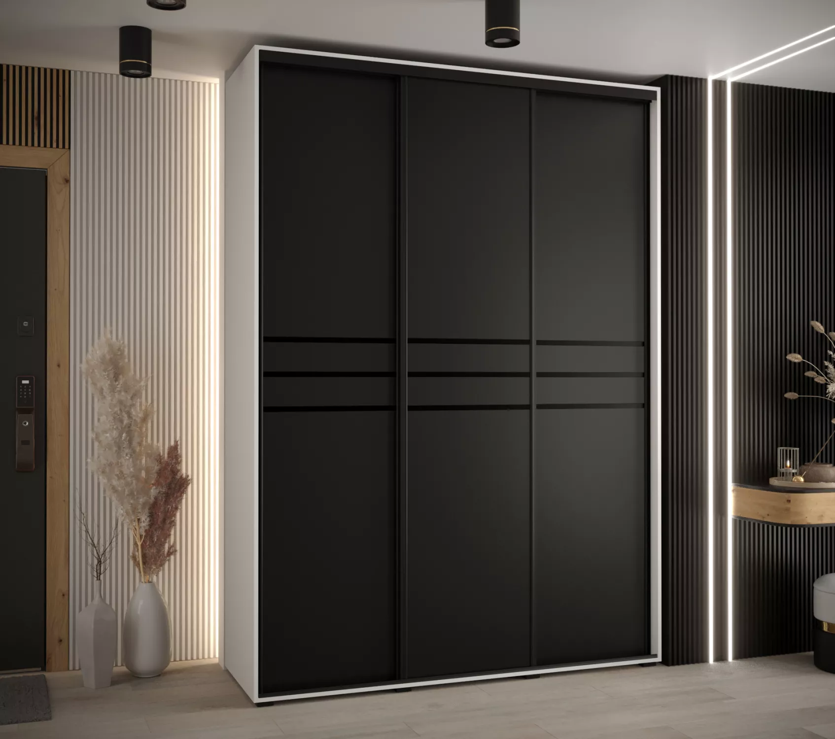 Šatní skříň ASIRI 10 - 170/45 cm, bílá / černá / černá